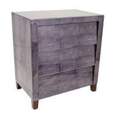 The Shargreen 3 Drawer Chest is a favourite when style and elegance are called for. It sits well in most interior settings giving a contemporary feel or a modern twist when put in a more classic place. The full 1950 Dark Grey Range includes the 3 Drawer chest (8002) The 3 Drawer Side Table (8001) The 2 Drawer Console Table (8003) and the 1 Drawer Bedside Table (8148) Our shargreen effect furniture has a processed finish behind glass which gives a deeply lustrous and lacquered finish, whilst retaining a warm and textured look.
