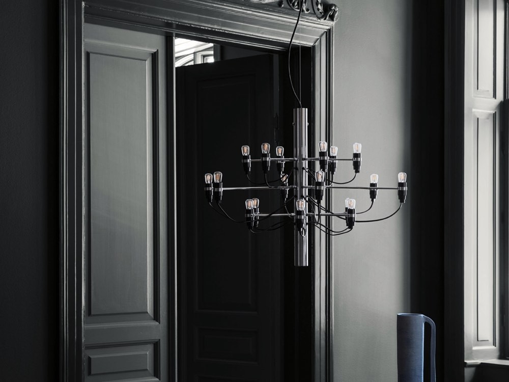 Created in 1958 by legendary Italian designer Gino Sarfatti for luxury lighting manufacturer Flos, the 2097 pendant/chandelier updates neoclassical ideas of lighting with contemporary forms and modern finishes. Now available in a smaller 18 branch version.