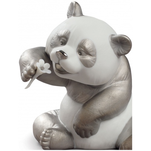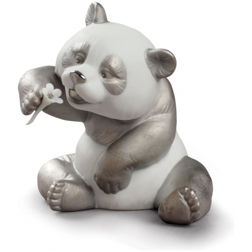 A Cheerful Panda Figurine. Silver Lustre