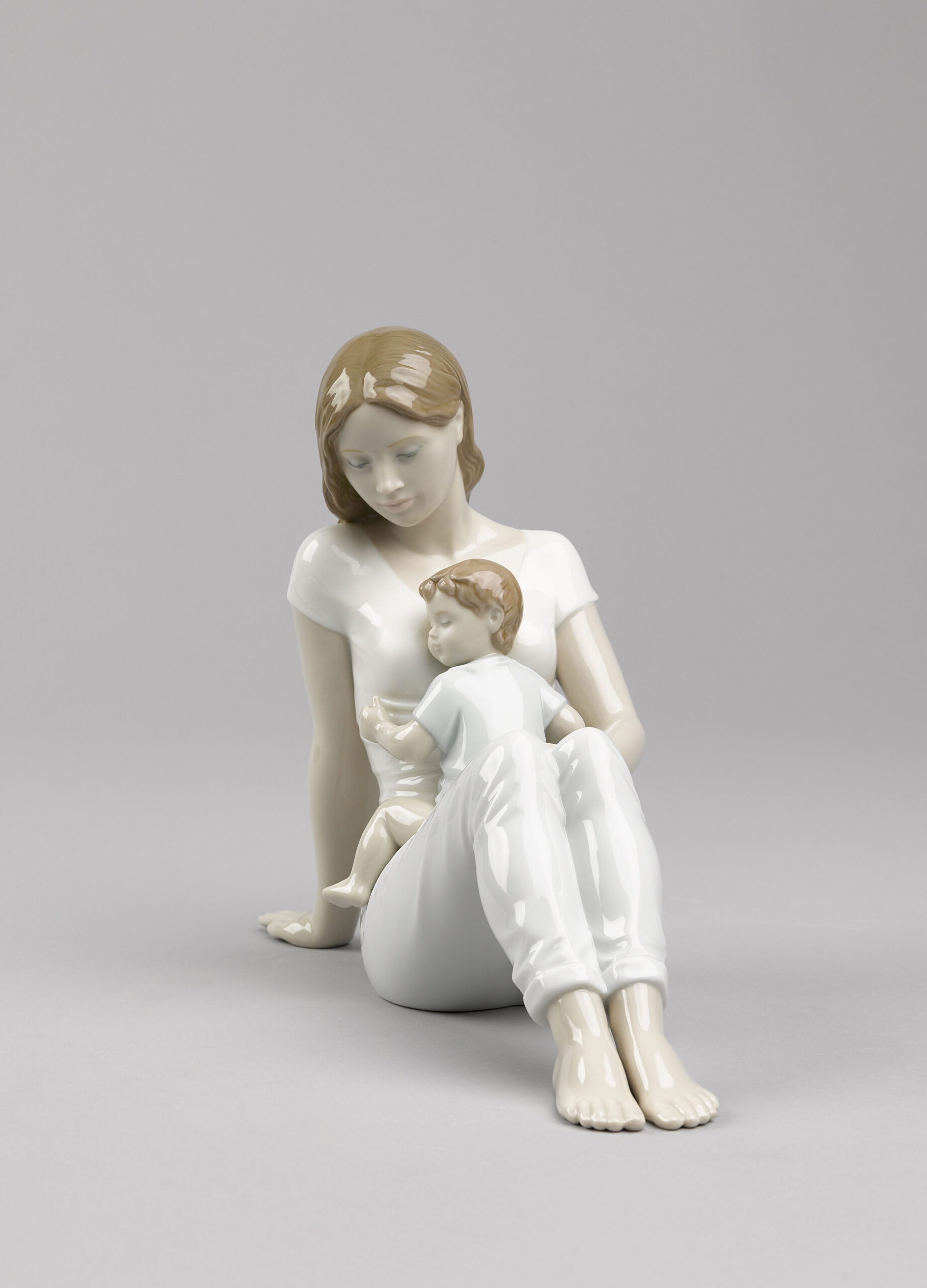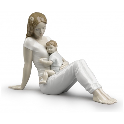 A Mother’s Love is a porcelain figure that embodies the universal concept of motherhood, as seen from a current perspective: youthful and in an everyday position. Clothed in the manner of a new generation of mothers and in a pose that conveys spirit without losing the intimacy of the moment. It transports us to a primal feeling of a mother gazing at her son as he rests on her.