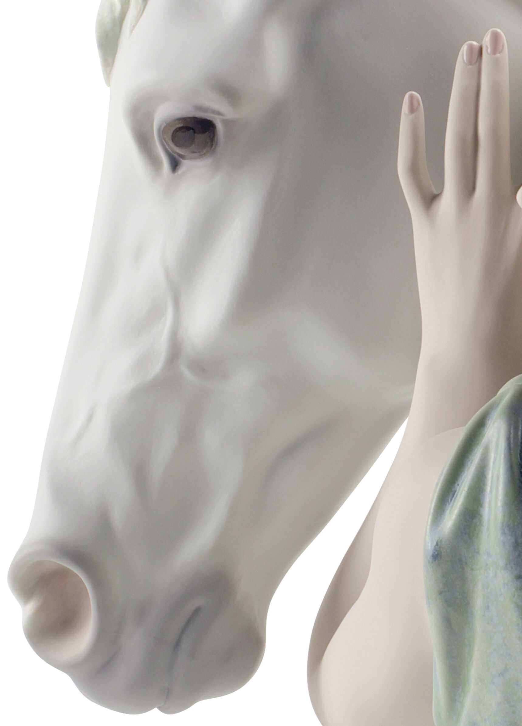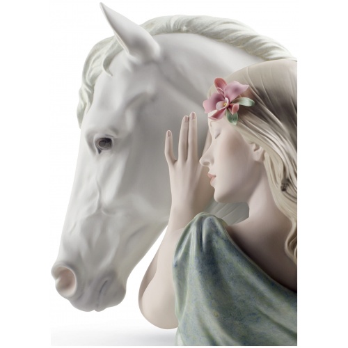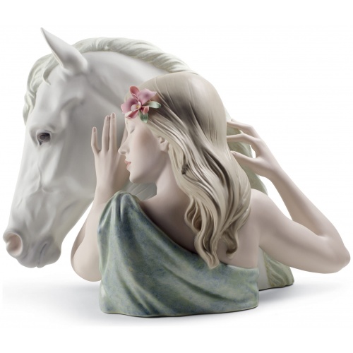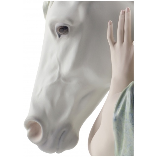 The relationship between a horse and its owner reflects the beauty of two beings united by trust, affection and loyalty. A piece of matt porcelain, decorated with enamels and soft pastel shades.