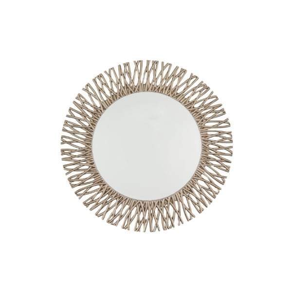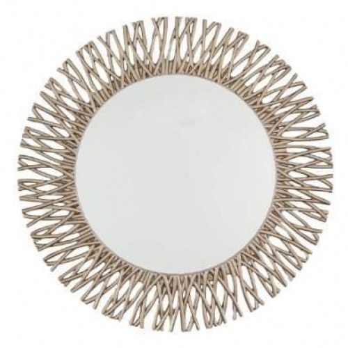 - This Adel Round Mirror in champagne silver leaf finish makes a beautiful impression and merits admiration wherever it is placed.