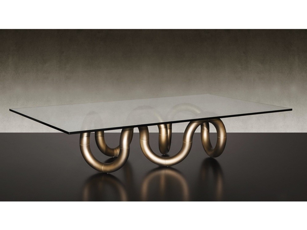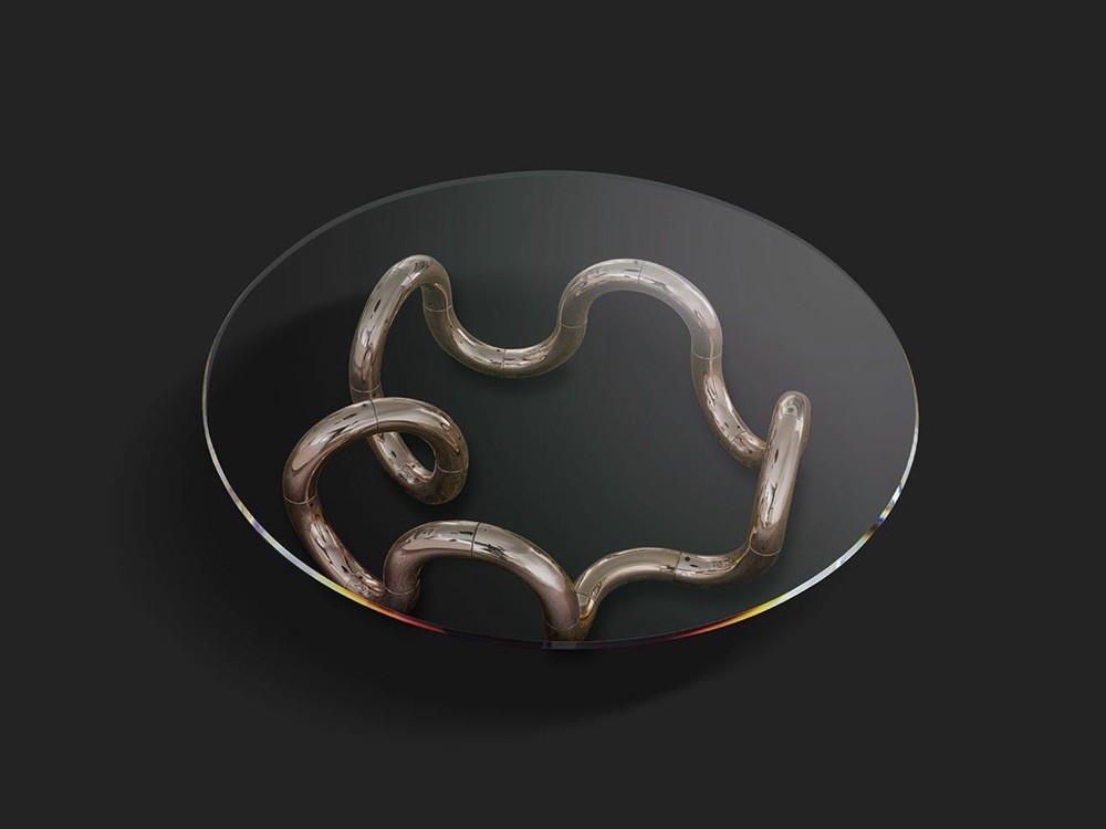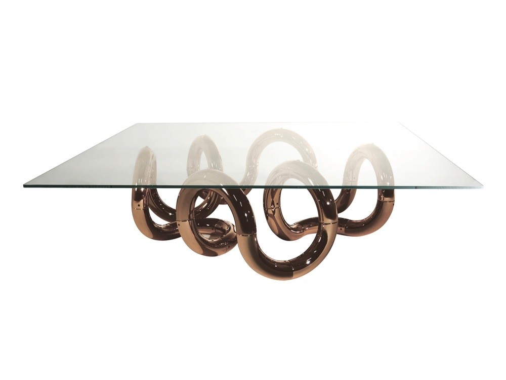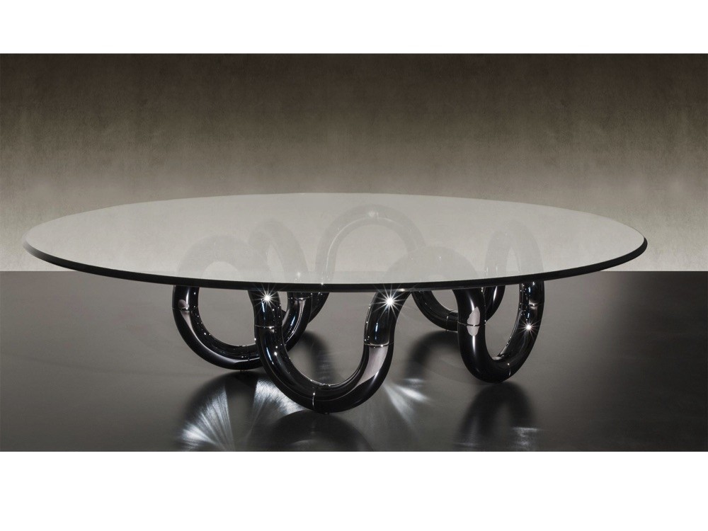 Fusing a polished glass top with a statement base, the Aenigma 40 is an opulent coffee table from Reflex Angelo.