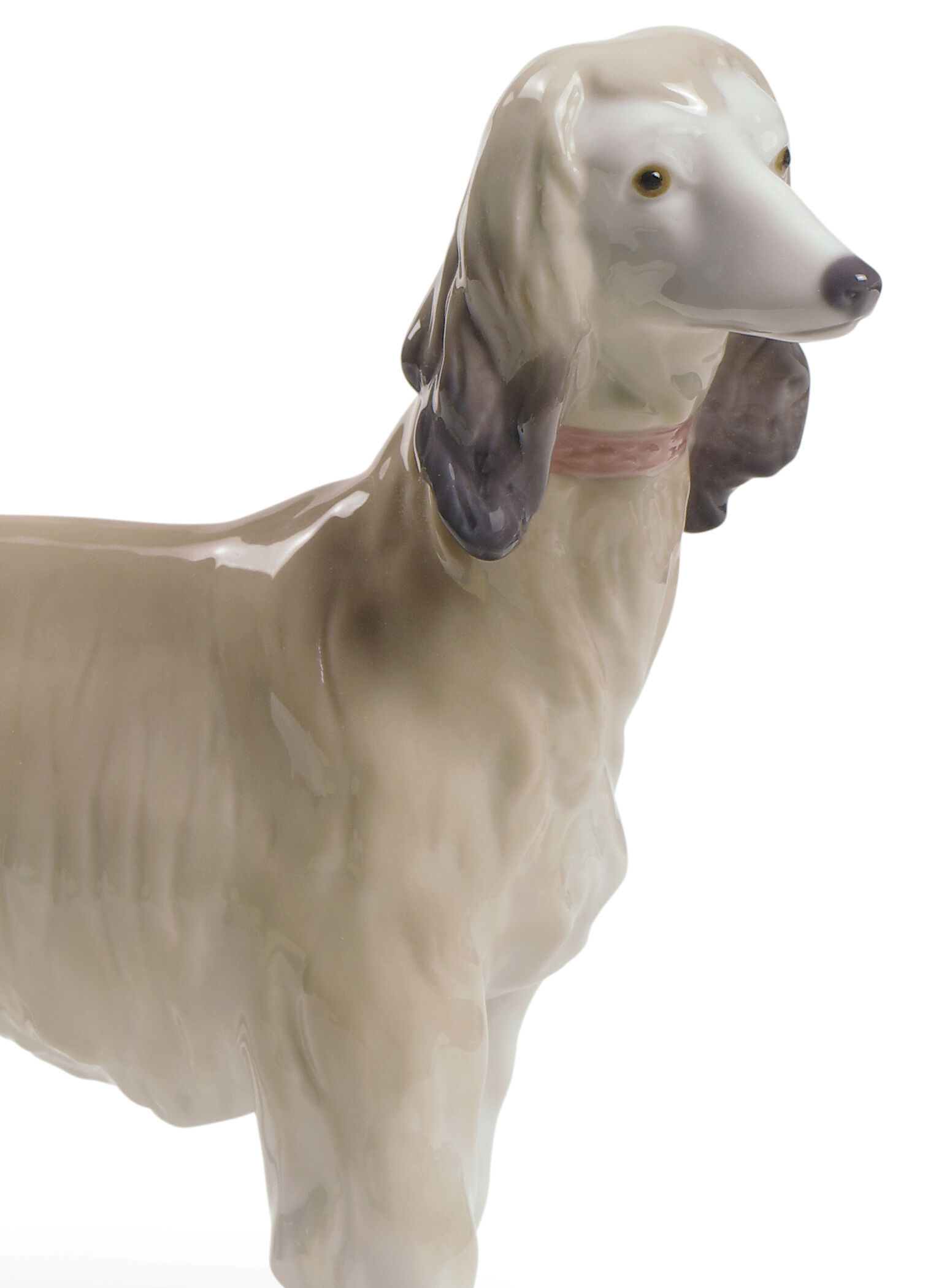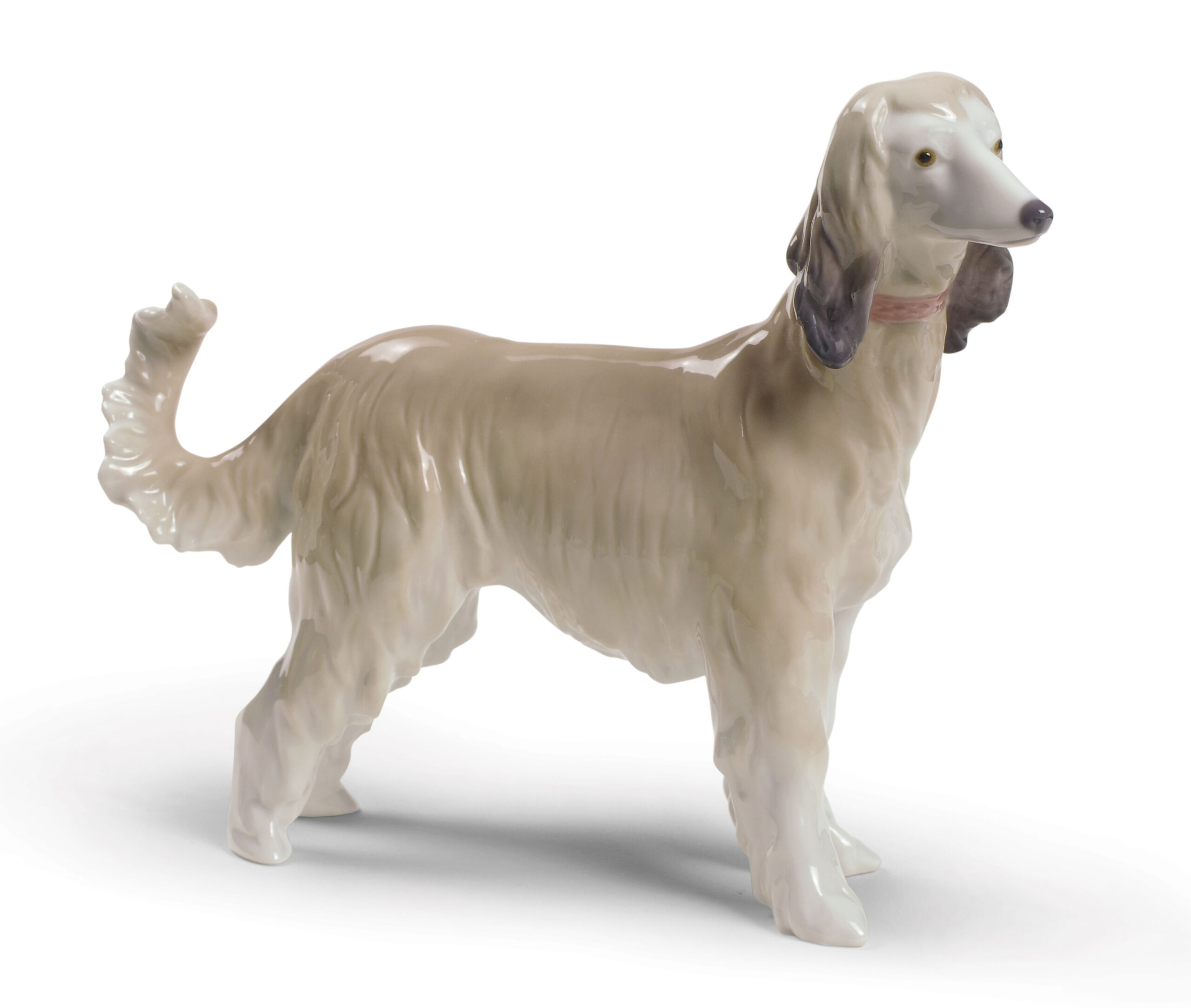 This realistic representation of the elegant Afghan greyhound, is part of the collection of dog breeds. Made of glossy porcelain, this piece shows in detail the characteristics of this companion dog, originally from Afghanistan.