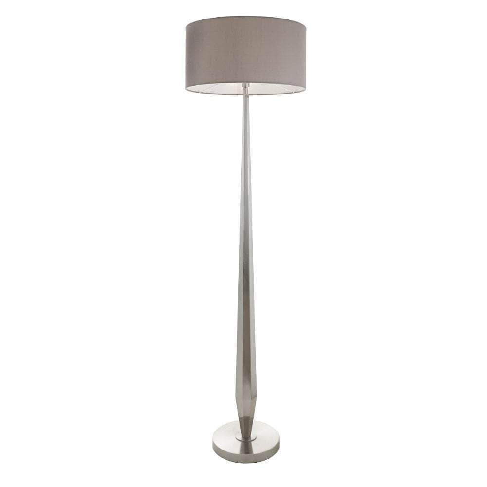 The brushed nickel finish floor lamp can be paired with a matching table lamp 50302.