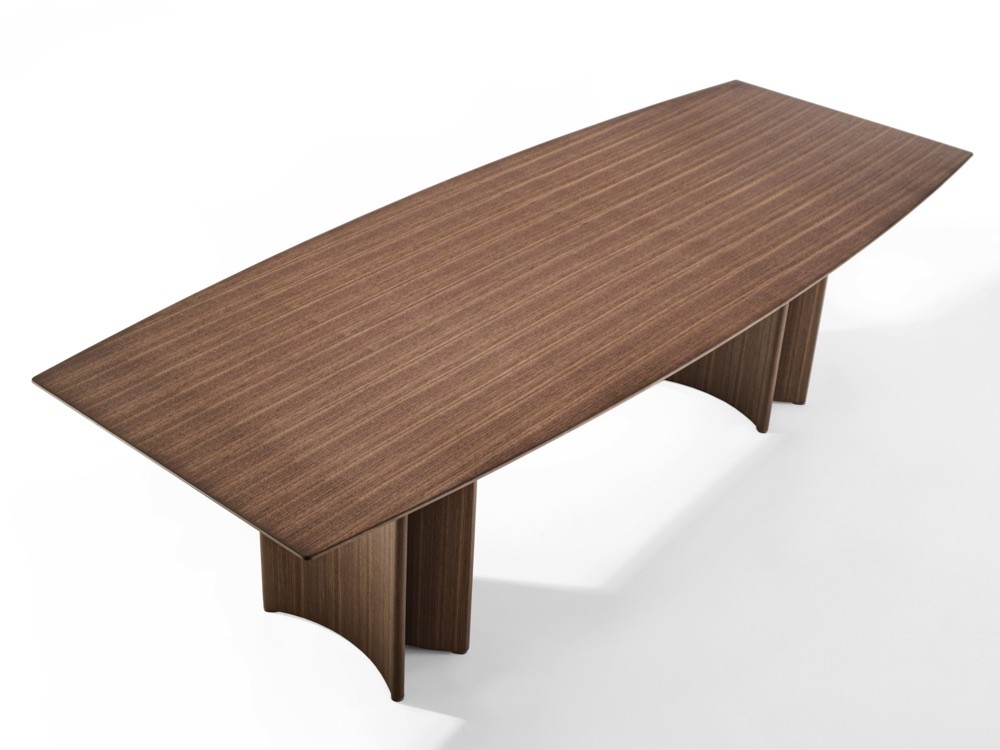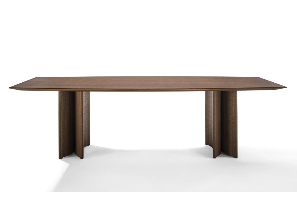 Create a stylish dining room focal point with this striking dining table from Porada. Each of the beautifully carved Canaletta Walnut bases is split into half-moon elements, emitting a gentle, organic appeal.