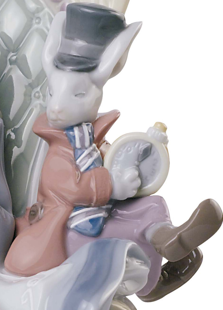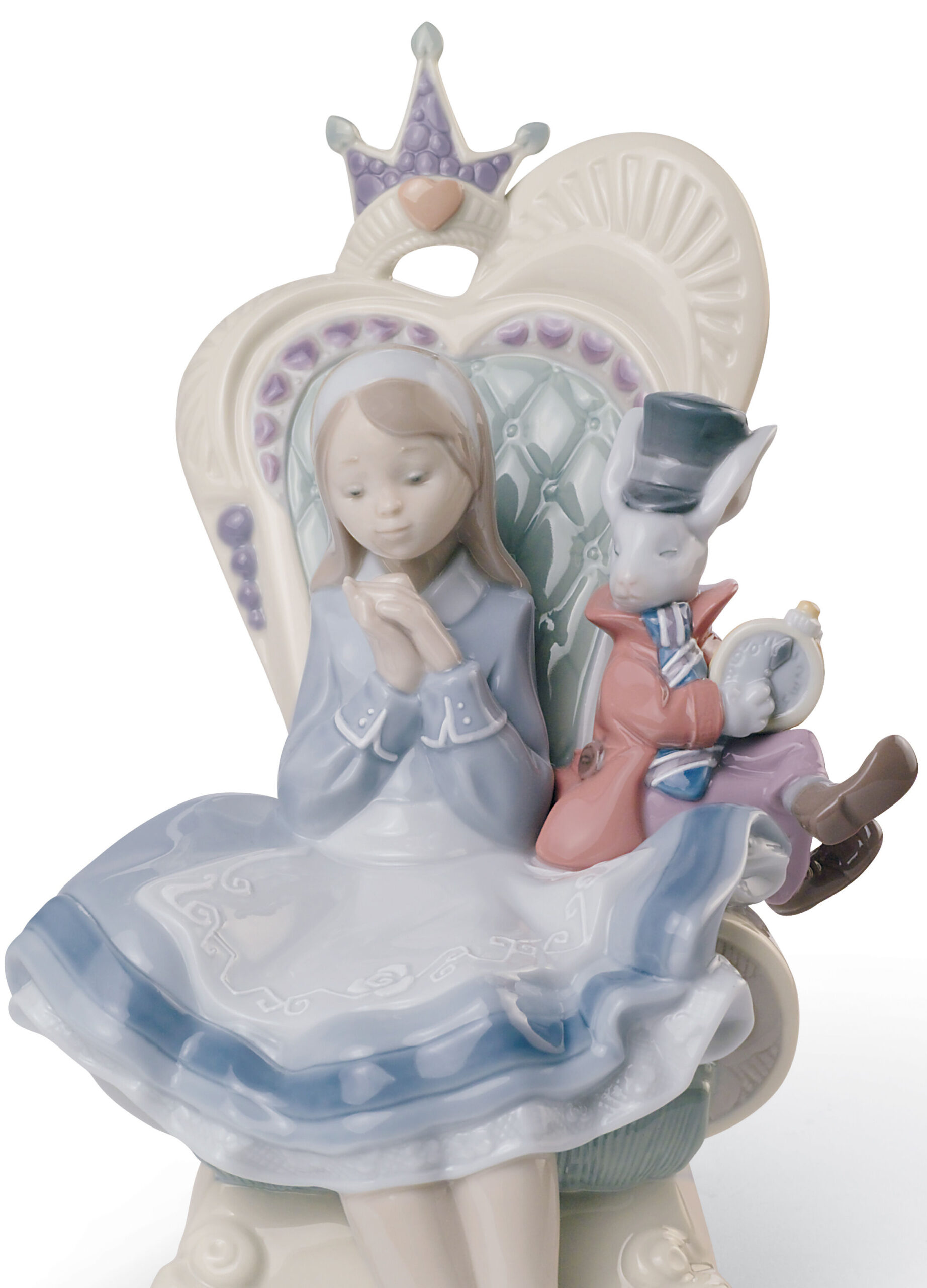 Based on Lewis Carroll’s famous novel, one of the most famous and influential children’s books of all time, this exclusive piece for Privilege Gold members is part of the collection of children’s stories. Alice appears seated in a princely fantasy armchair next to the White Rabbit, another of the main characters of the girl’s fantastic adventures. Finished in glossy porcelain and decorated with the soft pastel shade palette characteristic of Lladró’s classic pieces, it is an ideal piece for decorating a children’s room, as a gift or as a collector’s item.