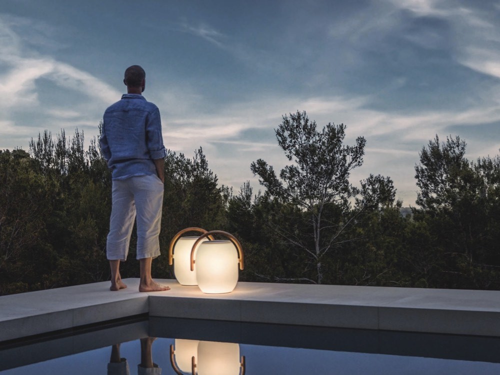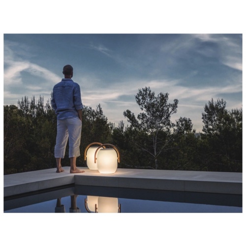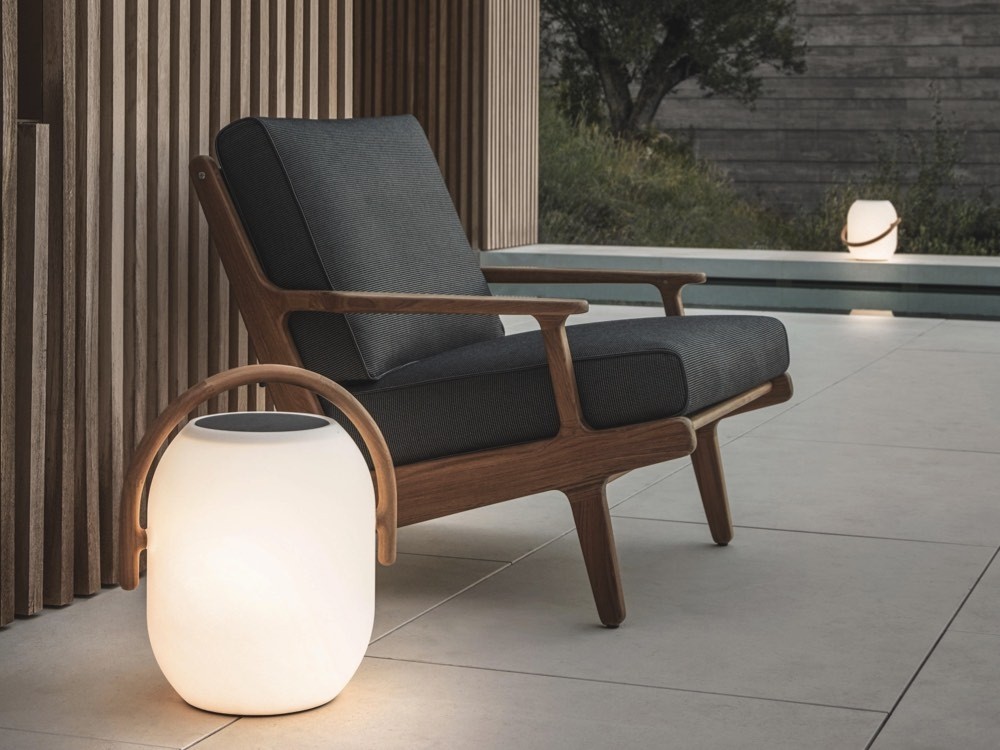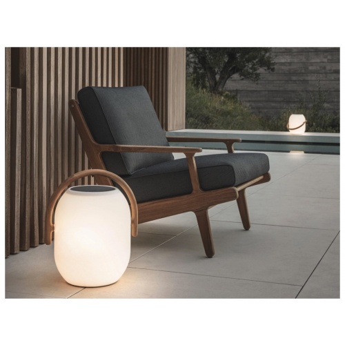 Mimicking the perfect texture and symmetry of silk cocoons, these minimal and delicate looking lanterns are deceptively tough. Manufactured from thermoplastics and combined with a striking solid buffed teak handle, these solar LED lights are as much about design as they are about illumination.