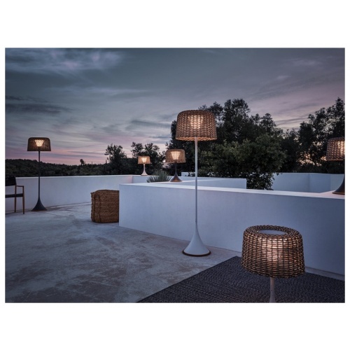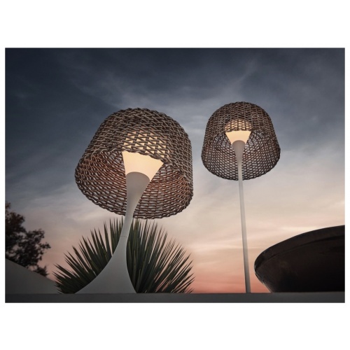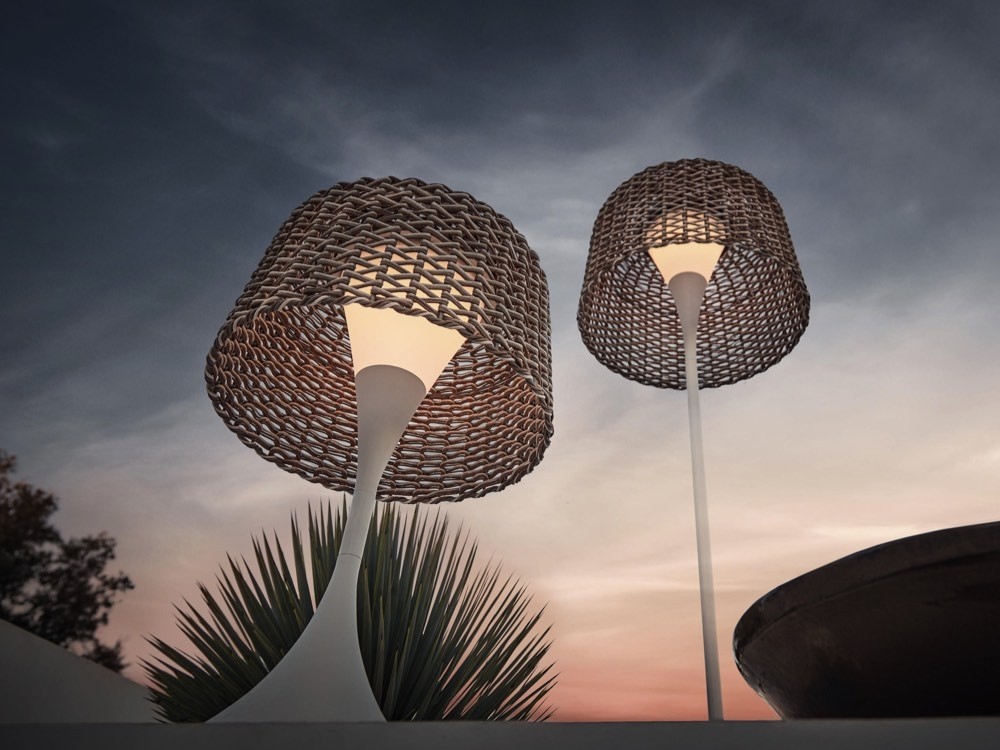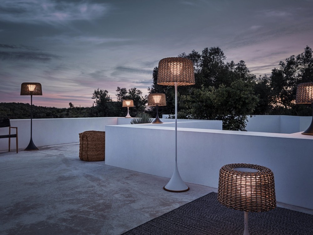 The Ambient Mesh Collection engages in a beautiful play of shadow and light thanks to its woven latticework shades. Poised above a slender frame, each light appears like a beacon in the darkness, creating ethereal outdoor rooms where once there was darkness.