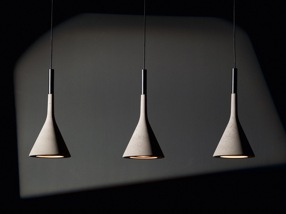 Aplomb is a small suspension lamp that creates direct and precise lighting on an underlying surface. Each colourway evokes a different sentiment, from the traditional grey of cement in its raw state to the unmistakable earthiness of olive green.