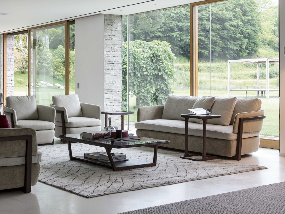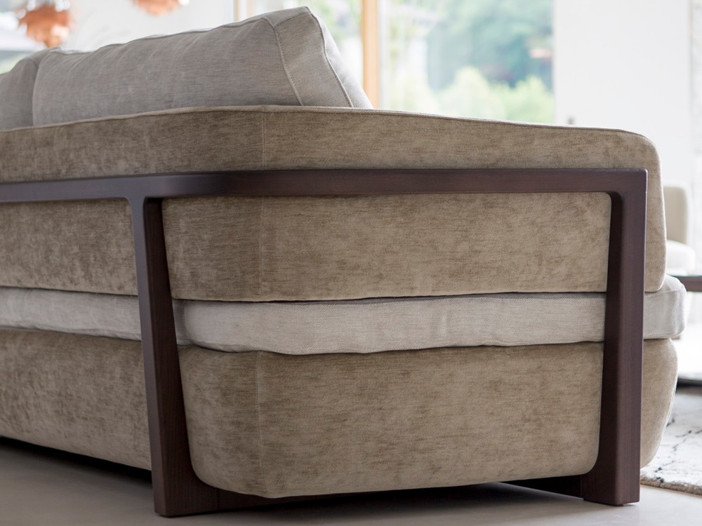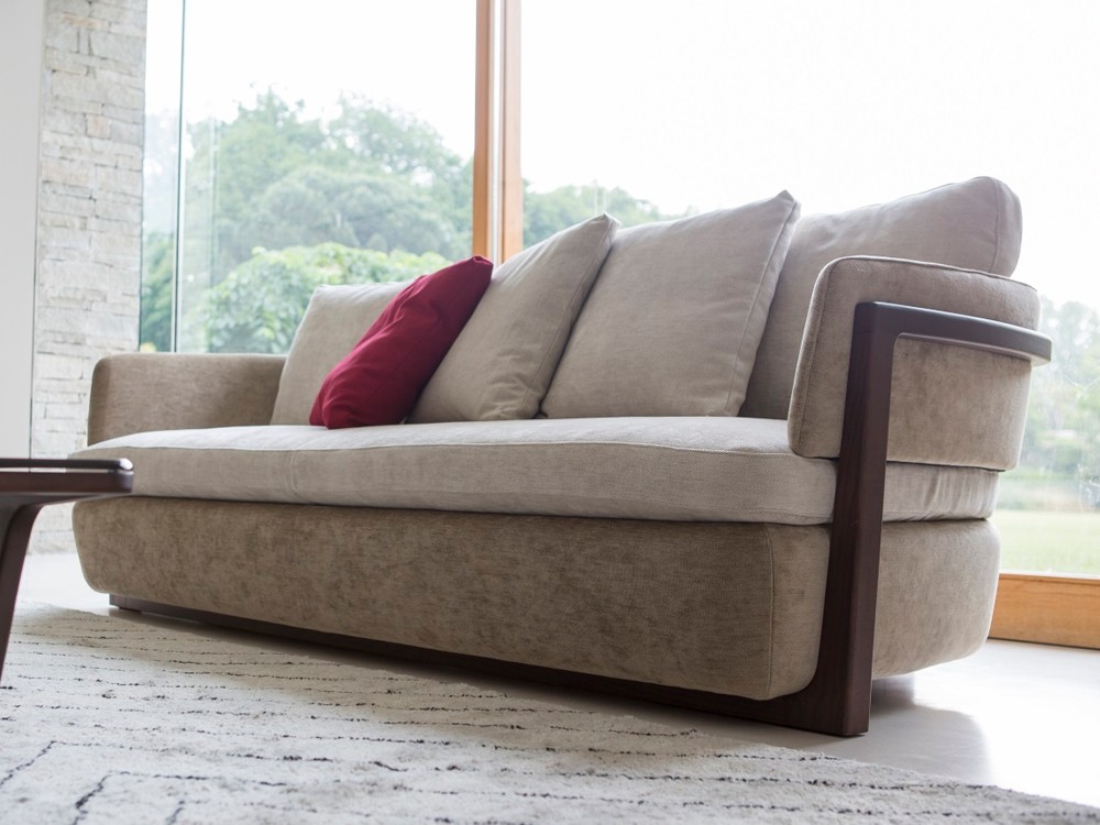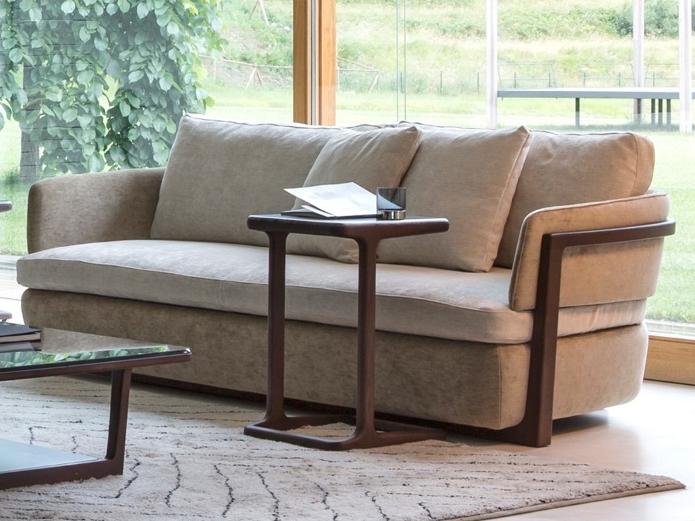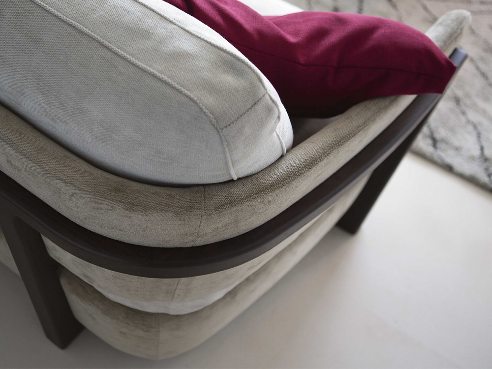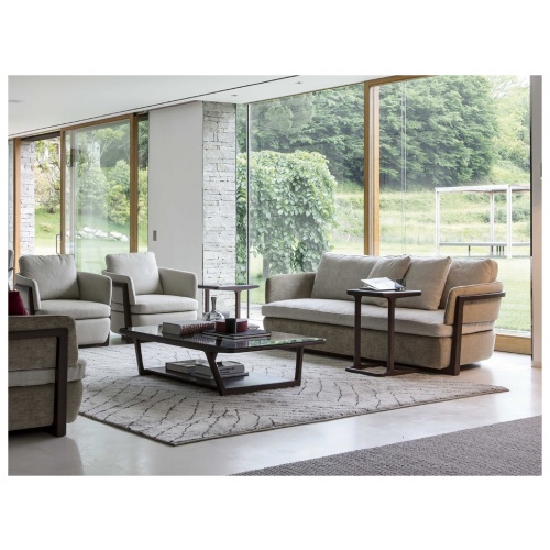This beautiful sofa is offered in a two seater. The curved frame is crafted from natural ash finished in canaletta walnut.