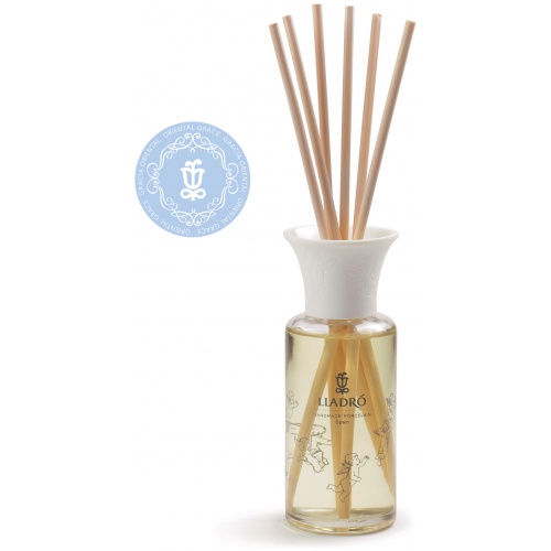 The Matte white porcelain crown, which decorates the bottle and harmoniously collects the diffuser rods, shows an engraving of little angels, the same as the one printed on the bottle and which appears on all the elements of the Heavenly Dreams collection. This crown is varnished inside to protect it from possible splashes.