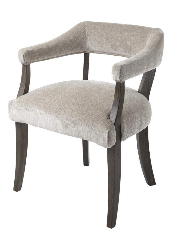 A comfortable and stylish chair. The dark wood frame perfectly compliments the Latte and Mouse chenille.