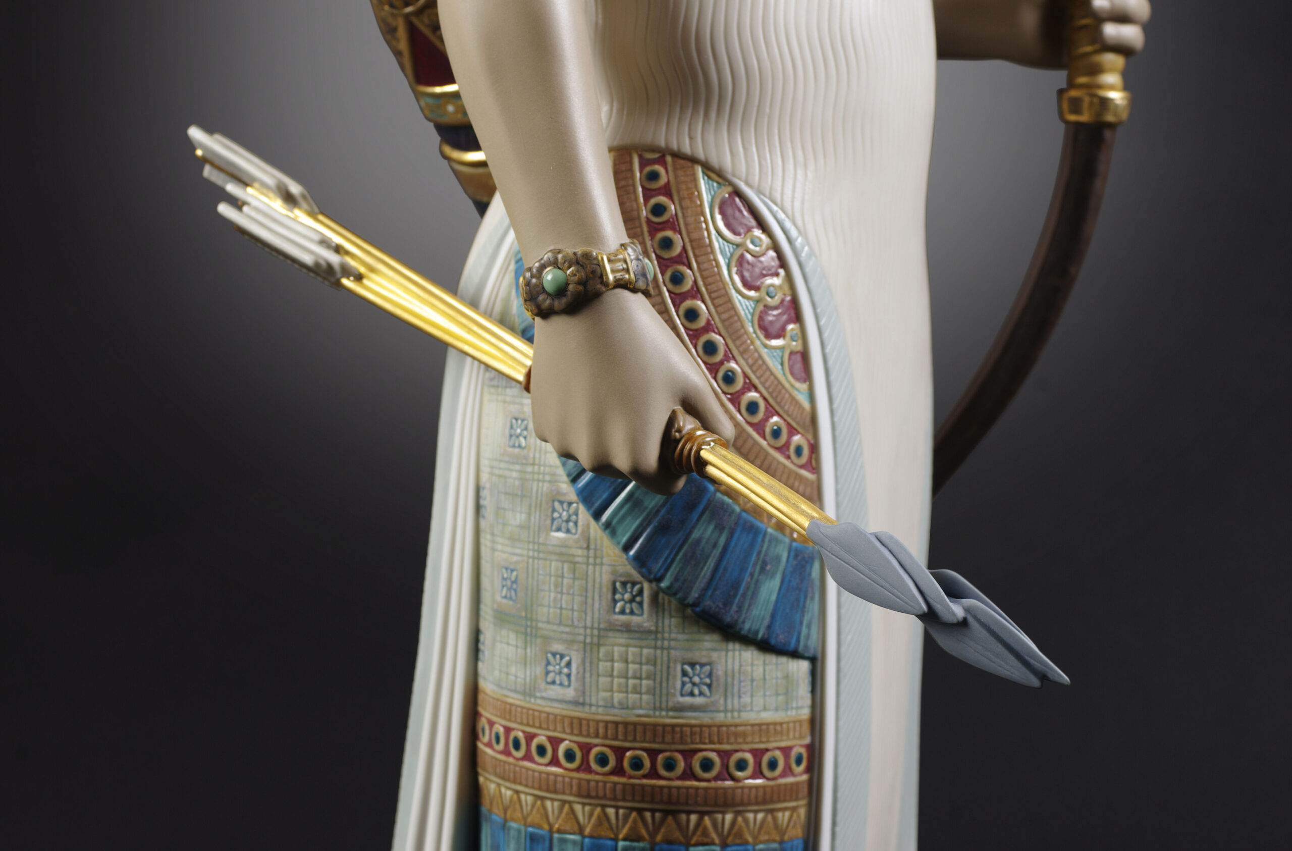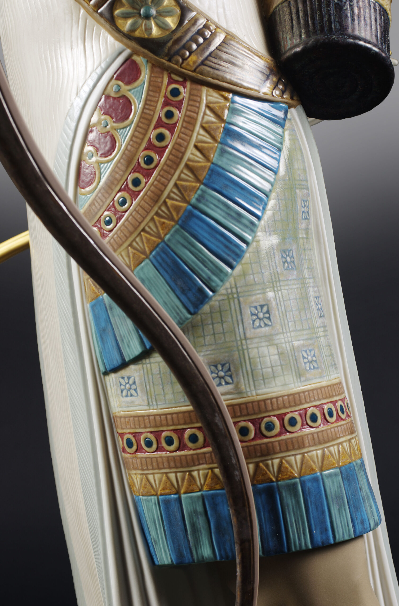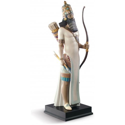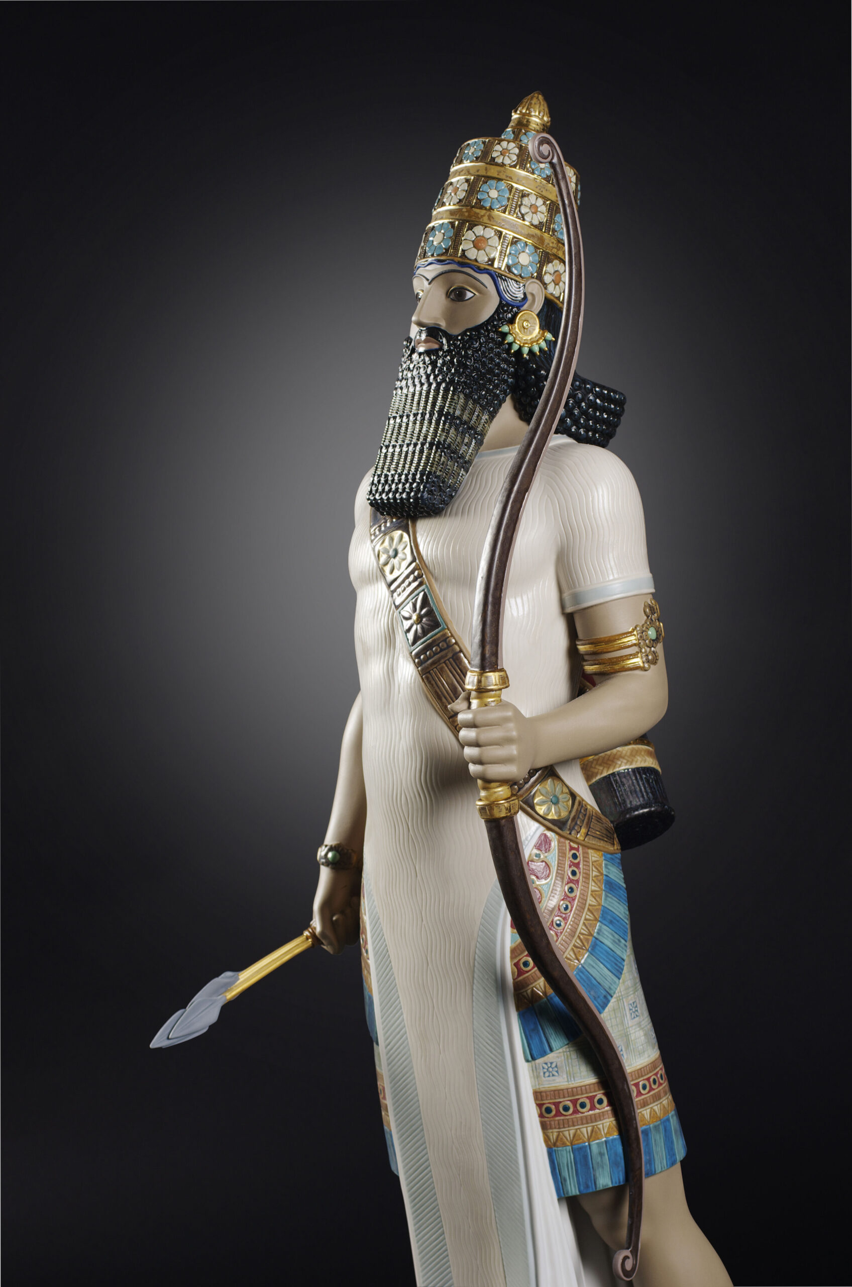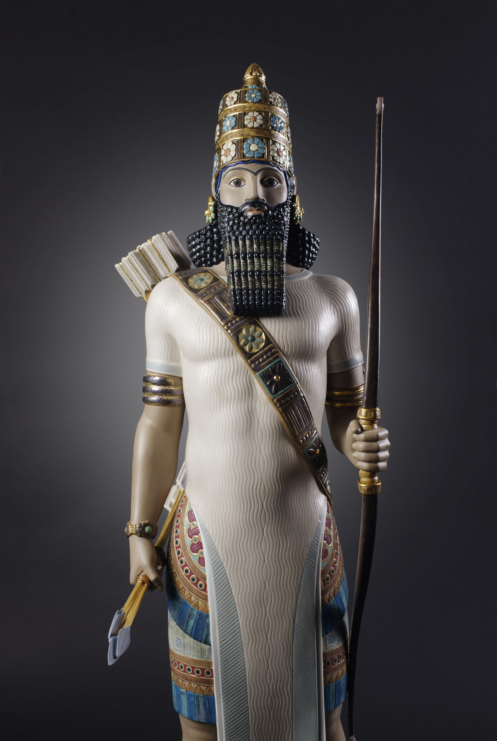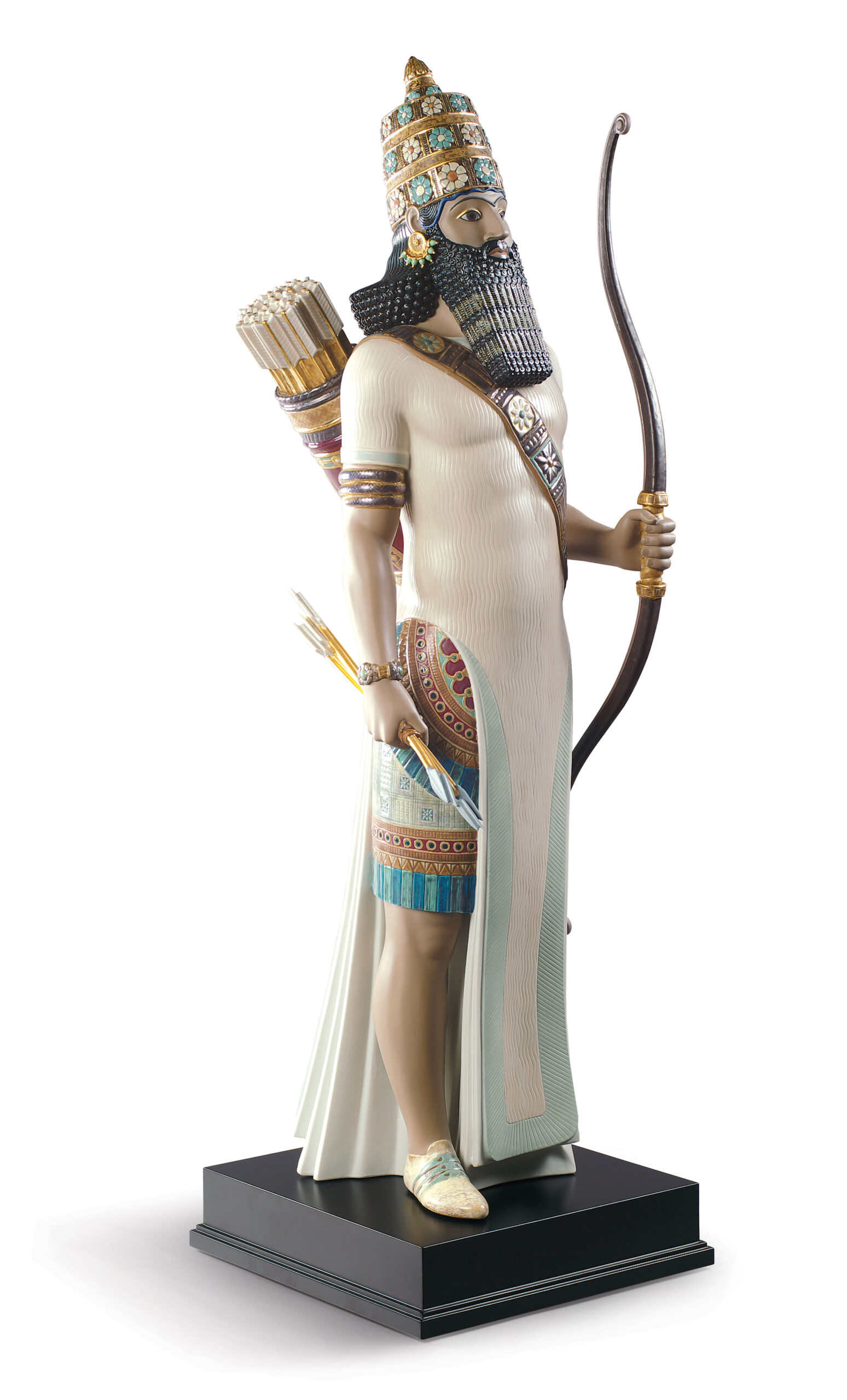 The imposing presence of one of the most powerful armies in the ancient world inspired this High Porcelain limited edition depicting an Assyrian archer of almost a metre in height, which takes us back to a past of splendour. Ashurbanipal, the last great king of Assyria, ordered a library to be built in Nineveh, and in their breaks they released the lions in the park and engaged them in combat. This mixture of cultural richness and imperial strength is represented in this warrior. The white linen robe reaching the ground, bracelets and bangles, helmet, shoes and leather quiver, and bow with golden handle …. everything speaks to the power and wealth of the figure. The result is a work which will forever evoke the splendour of one of the most fascinating civilisations in history.