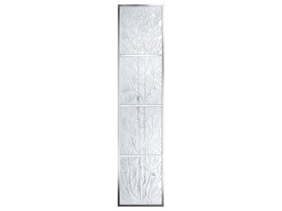 Nature was an endless source of inspiration for René Lalique. In 1990, LALIQUE designed the decorative panel Aster. It shows simple, delicate blossoms with star-shaped centers. To be used as a single panel or as part of a composition, this panel fits in any type of interior, from classic to contemporary. The contrast of the satin-finished and shiny crystal magnifies the fineness of the motifs.