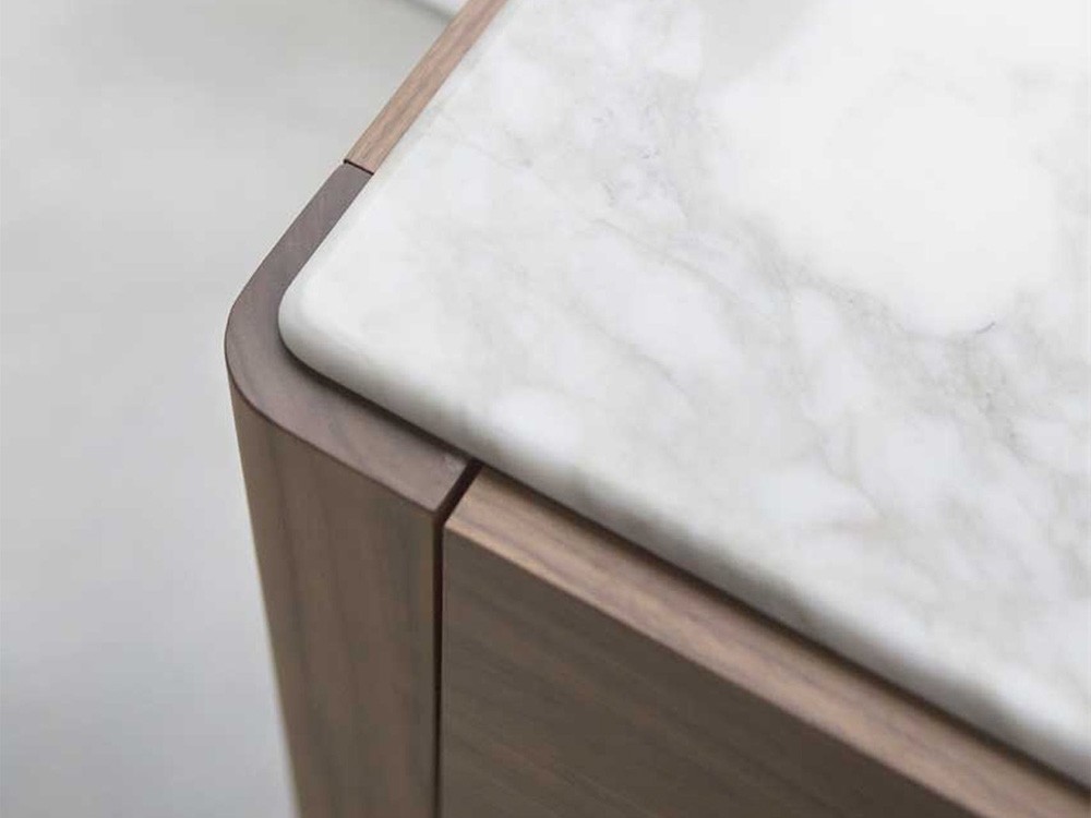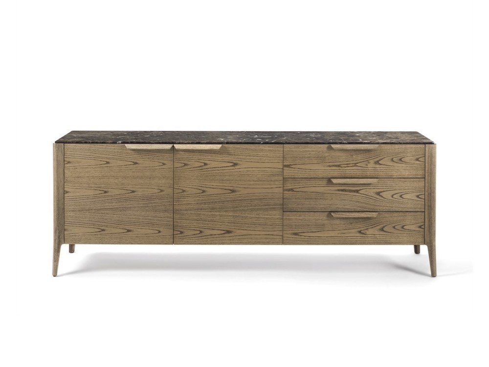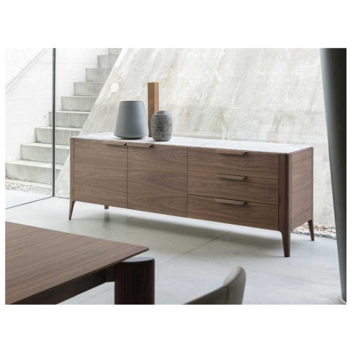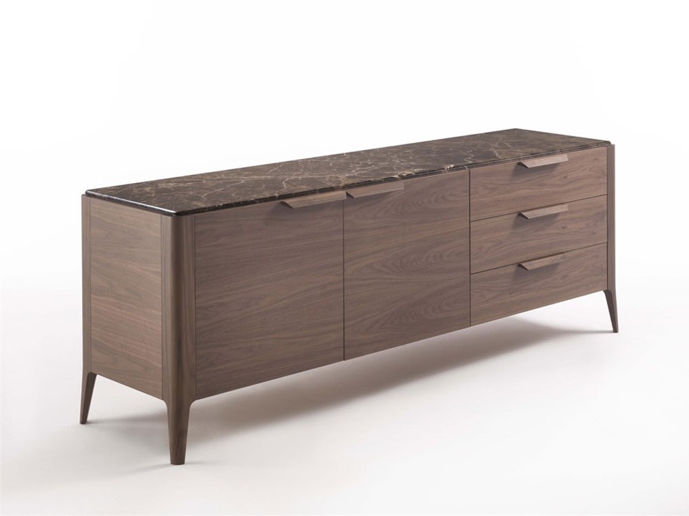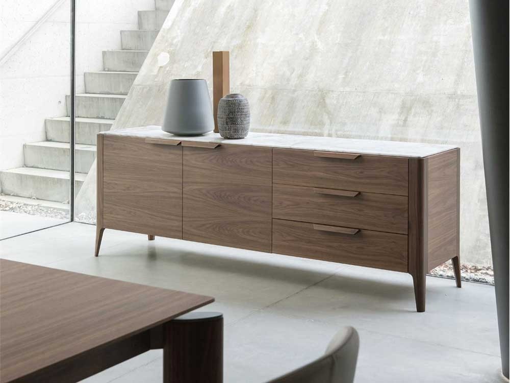 Designed by Carlo Ballabio for the luxury Italian furniture brand Porada, the Atlante 3 sideboard combines a solid Canaletta walnut frame with an exquisite marble top.