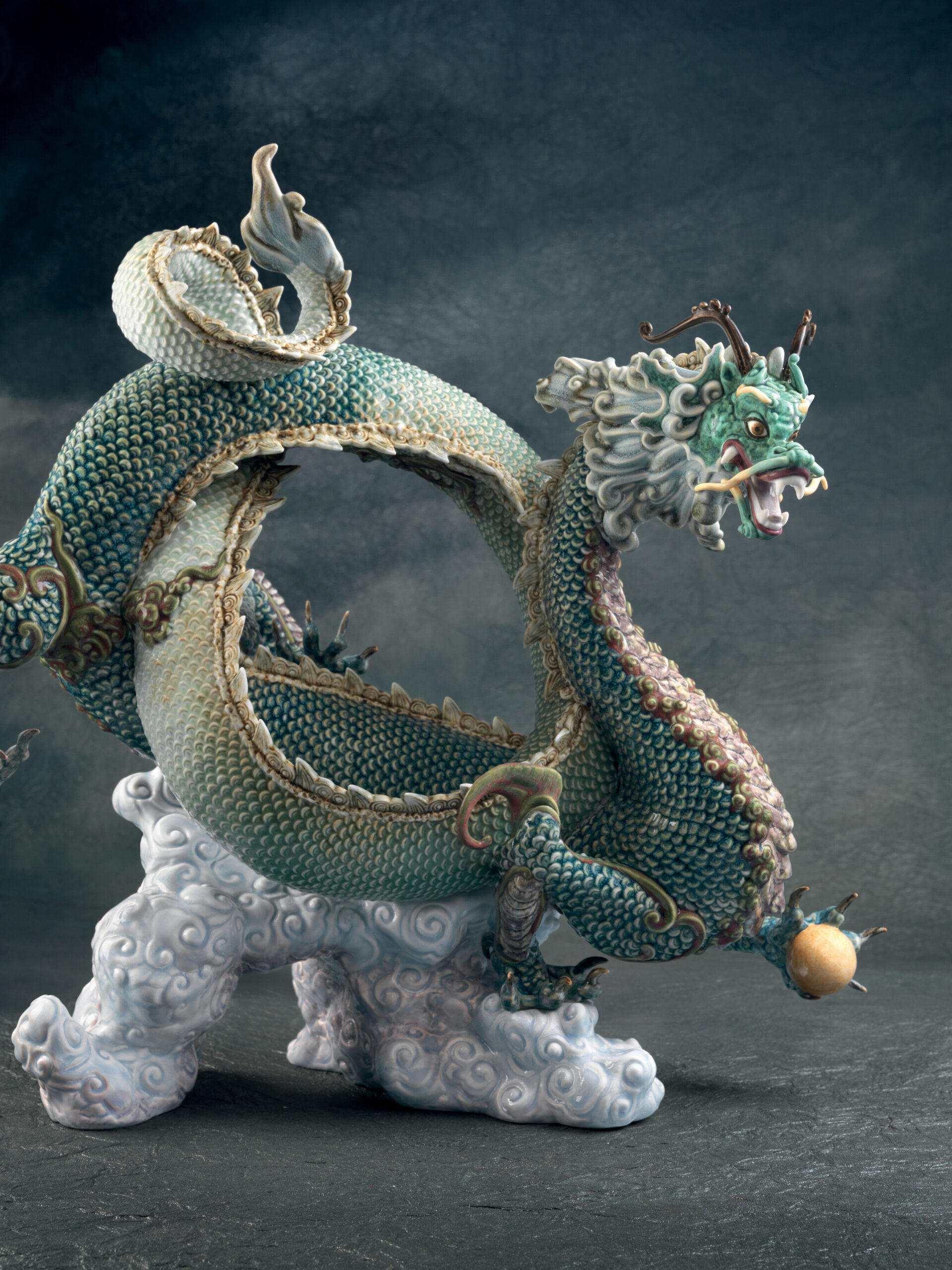 The decoration of this limited series focuses on a delicate range of greens, which is the color associated with the Dragon in Feng Shui. This creation, of great decorative power, is also ideal as a gift to wish health and happiness to its recipient.