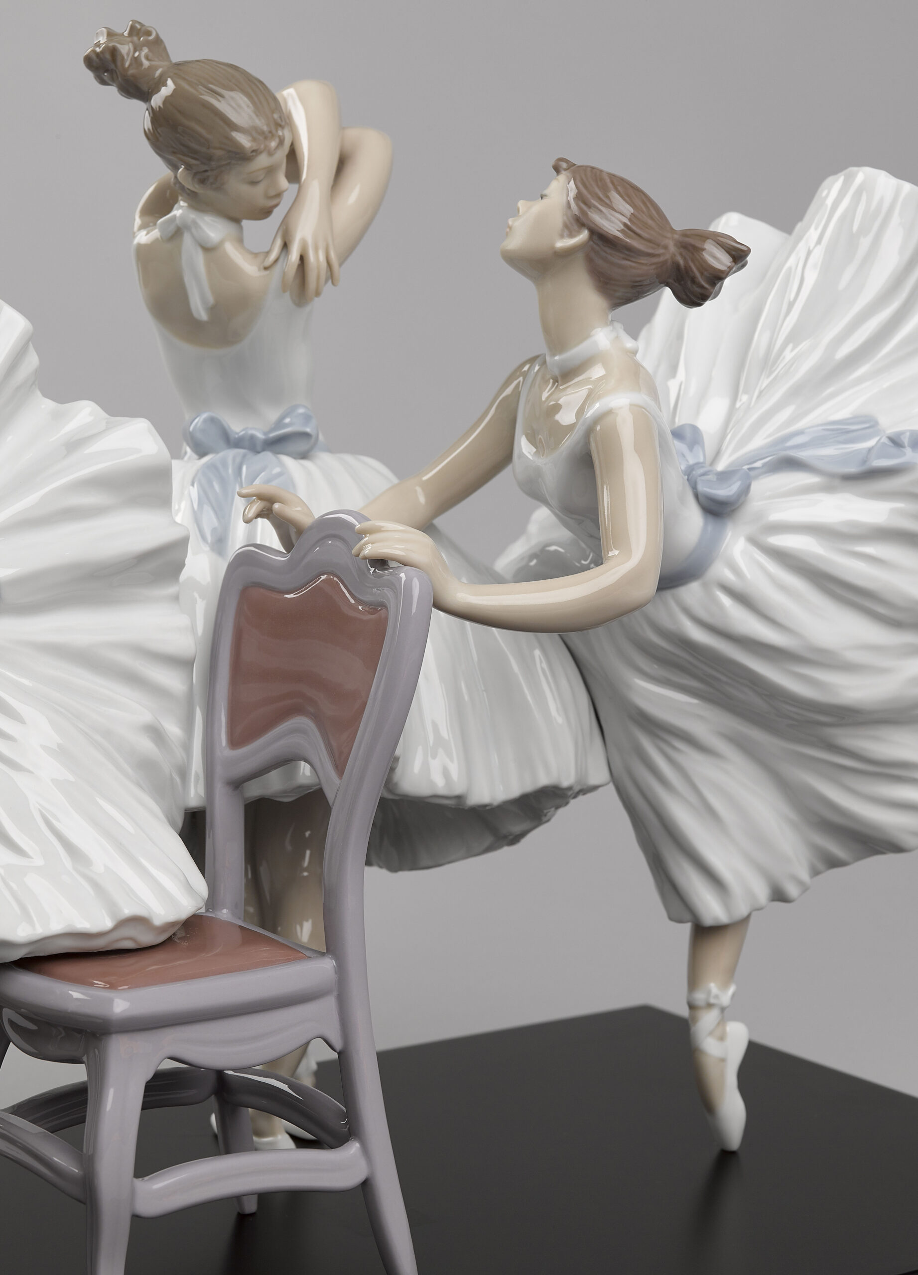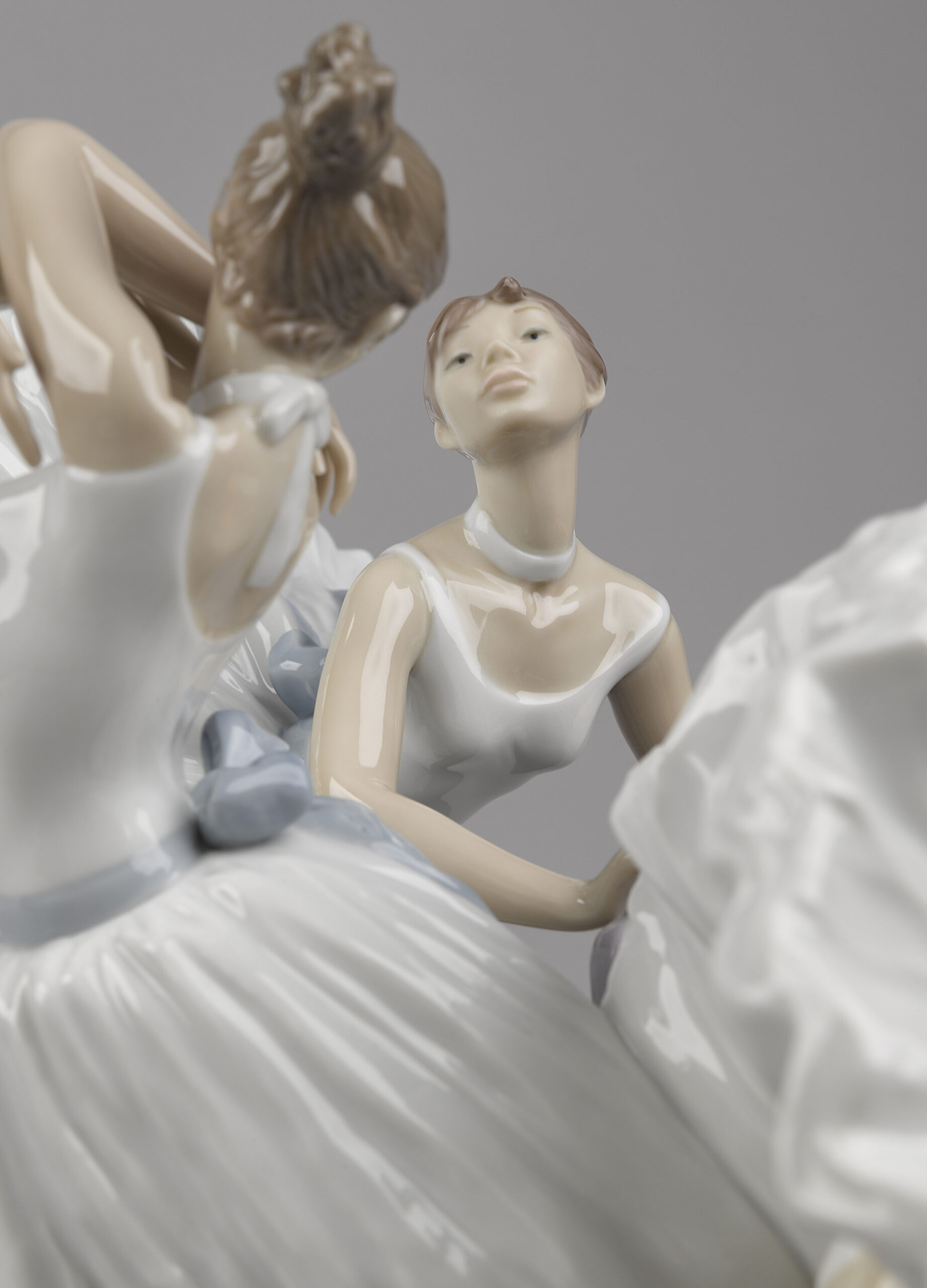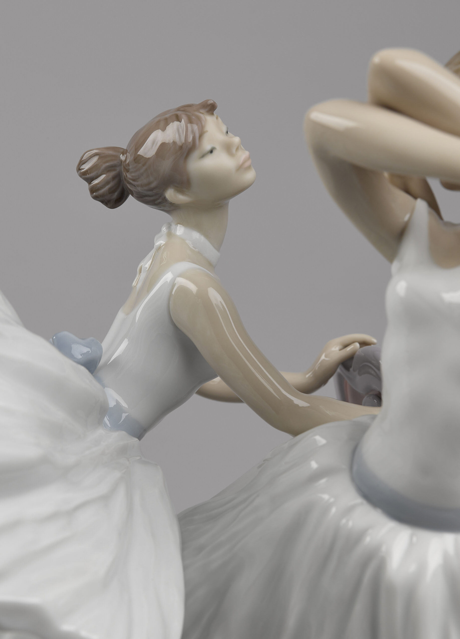 A beautiful composition, full of grace and movement, visibly inspired by the master of impressionism, Edgar Degas. A glossy porcelain piece, decorated in soft pastel colours, perfect as a gift for a lover of art or dance, or as a decoration for any setting.