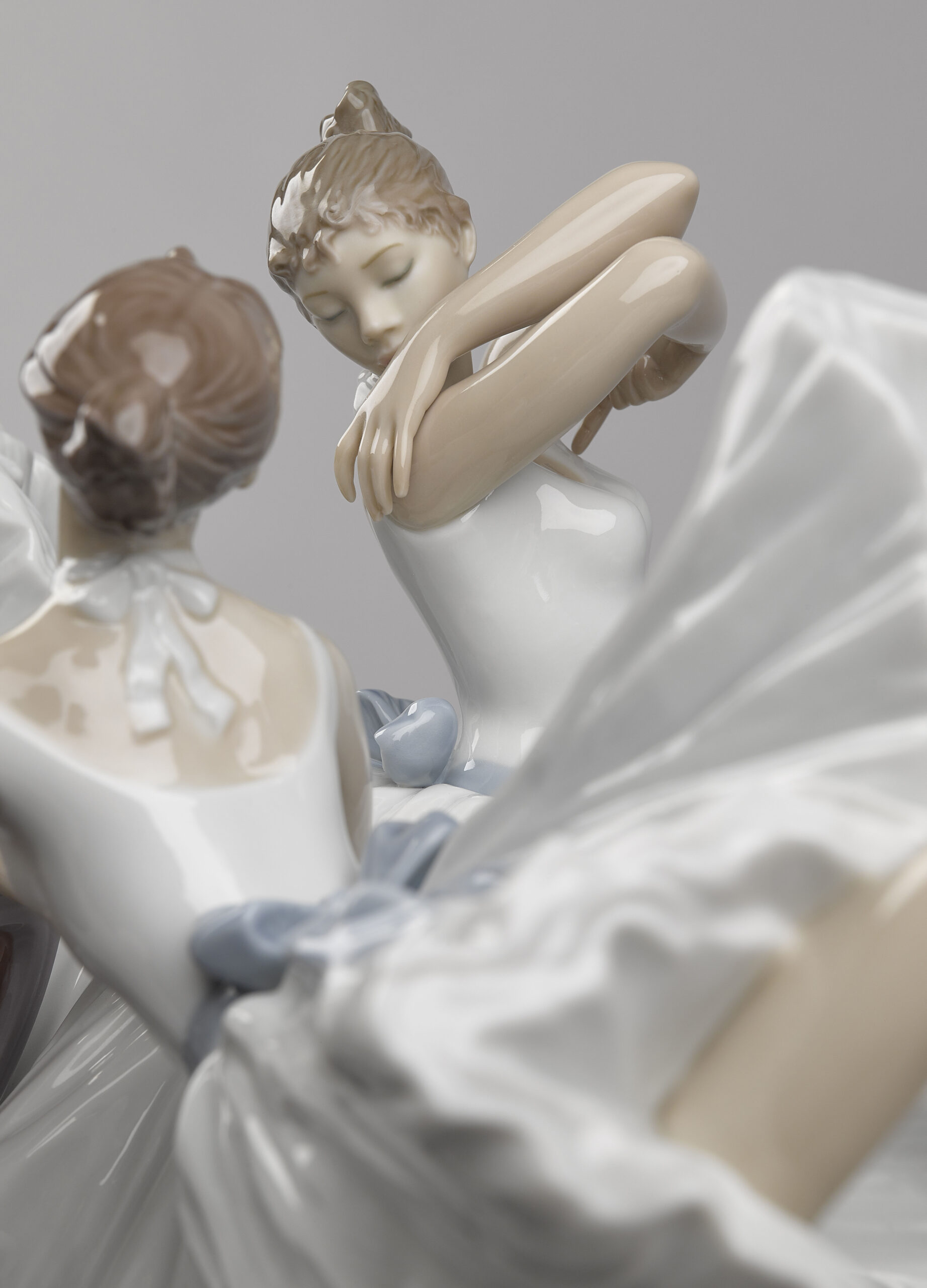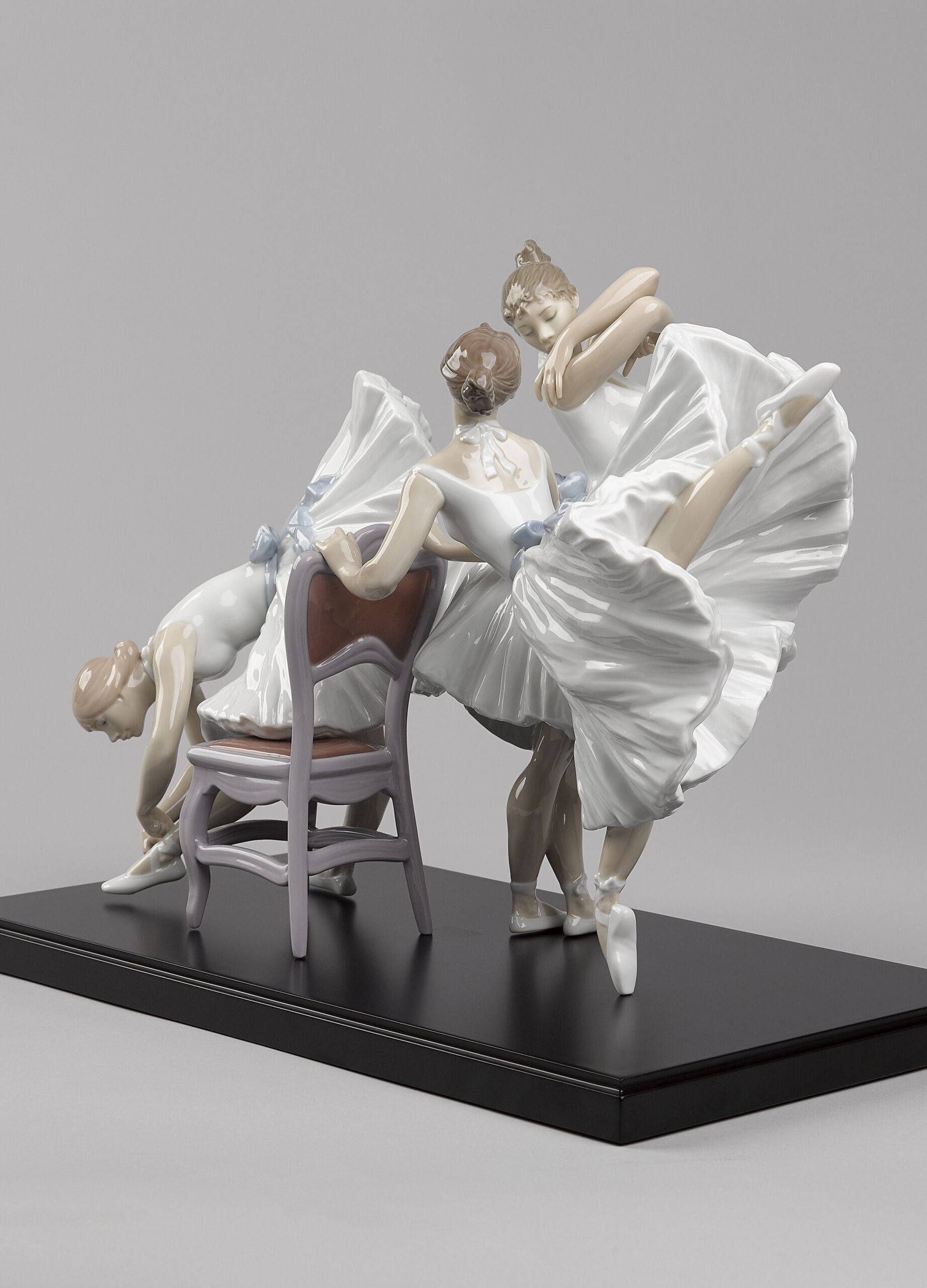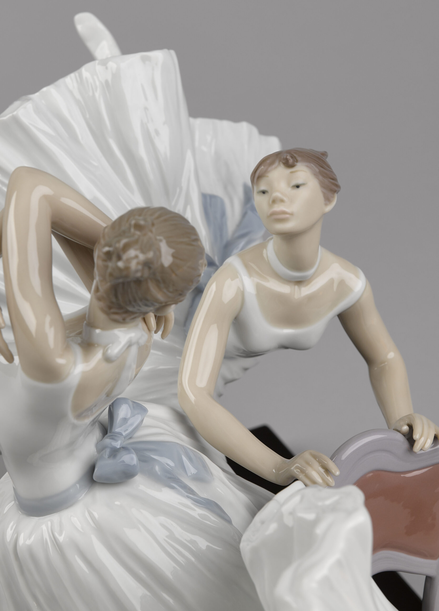 A beautiful composition, full of grace and movement, visibly inspired by the master of impressionism, Edgar Degas. A glossy porcelain piece, decorated in soft pastel colours, perfect as a gift for a lover of art or dance, or as a decoration for any setting.