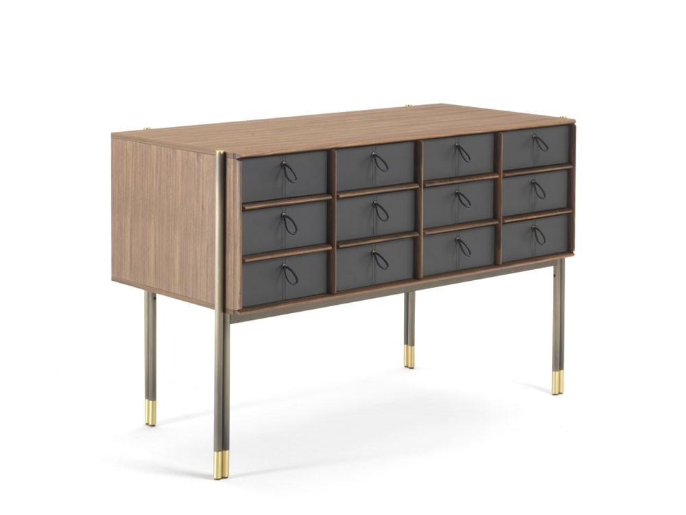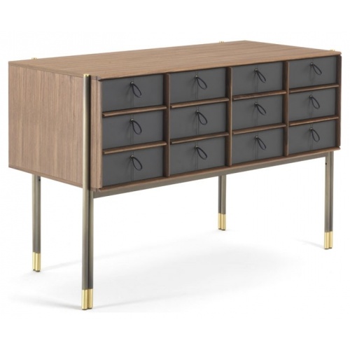 The Bayus Chest of Drawers are a love letter to detail. The 12 gorgeous leather drawers reveal Porada’s premium quality, while the Bronzoro metal base and brushed brass end feet add a touch of glamour to your everyday rituals.