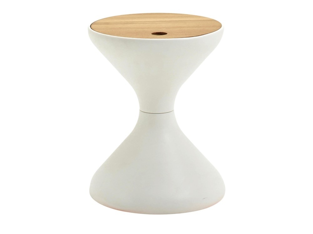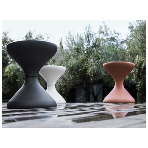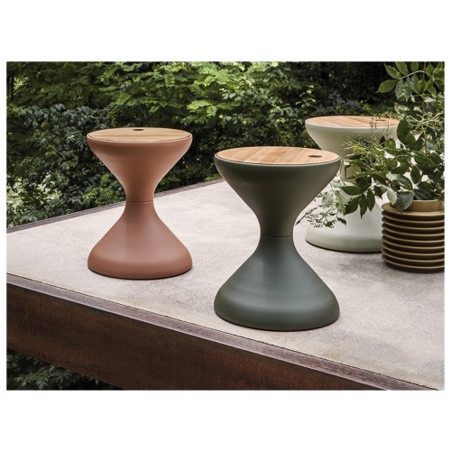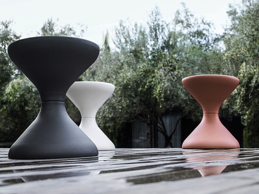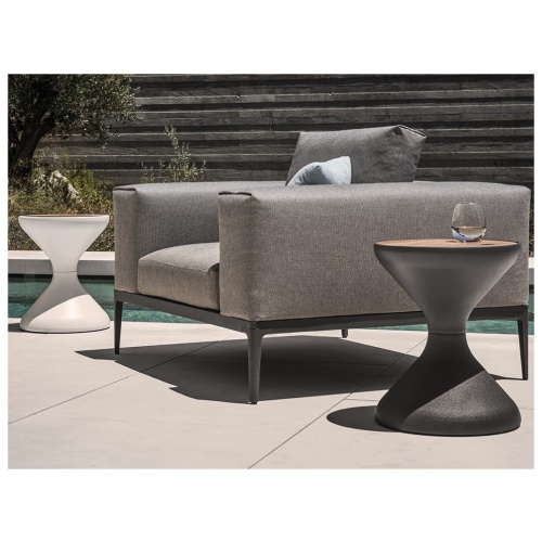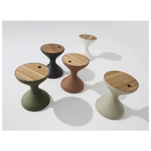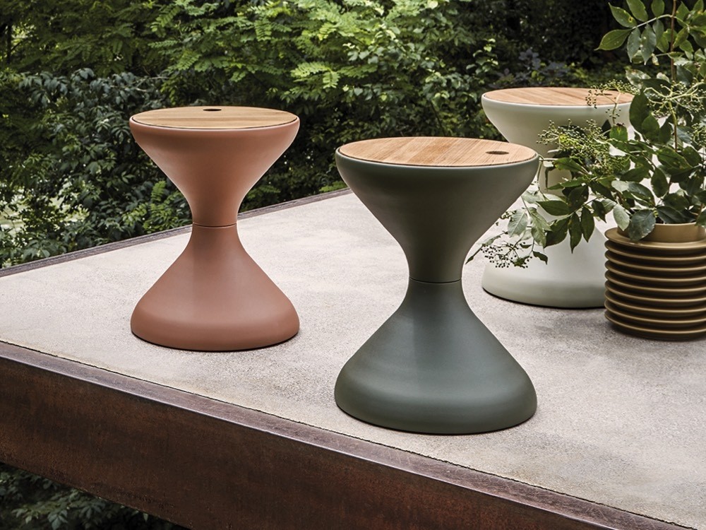 All sinuous lines and symmetrical forms, Bells plays homage to its namesake in typical Gloster style with a beautiful teak top and an industrial-looking frame. Available in a wide range of hues and models, it can customised with a removable top and ice-bucket insert for effortless alfresco dining.