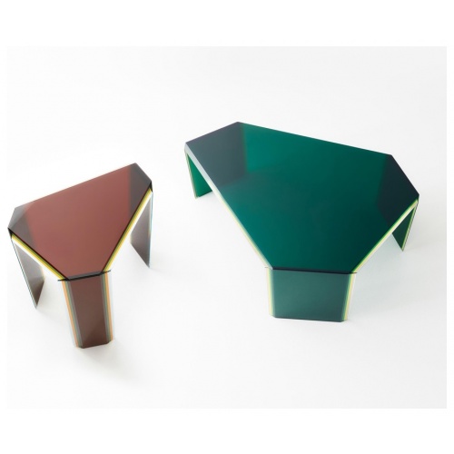 Bisel is a family of tables and opulent surfaces by renowned, artisan manufacturer Glas Italia. The breathtaking finishes are the result of a complicated layering process in which five slabs of multichromatic glass are joined together to create what can only be described as furniture jewels.