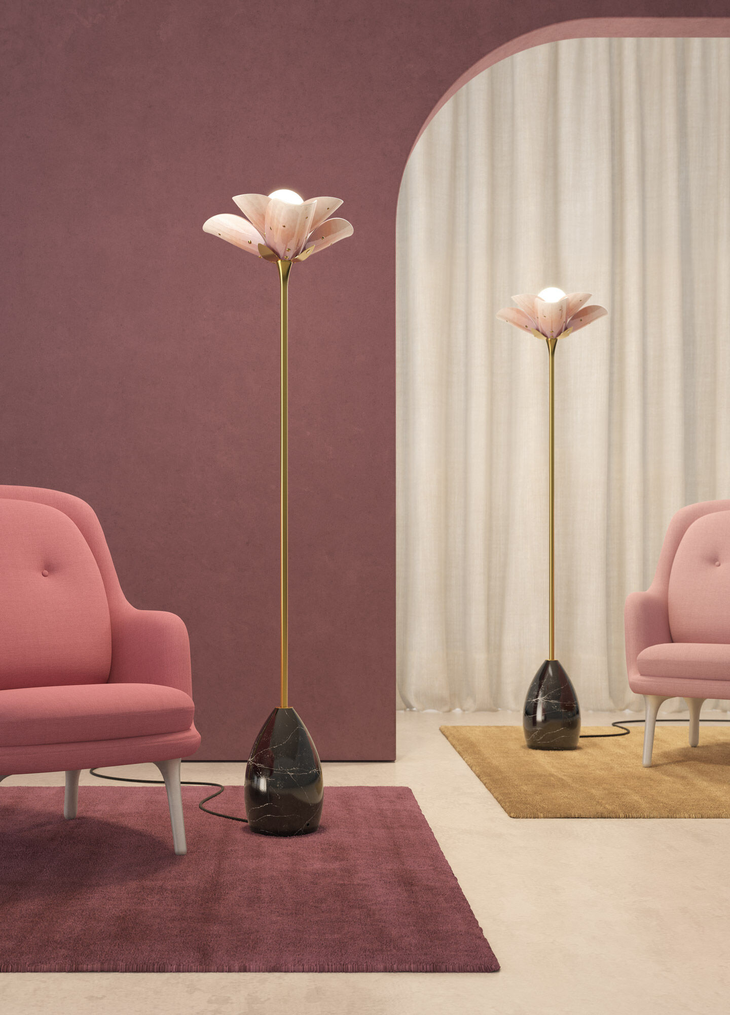 Blossom Floor Lamp. Pink and Golden Luster. (UK)