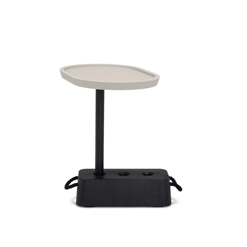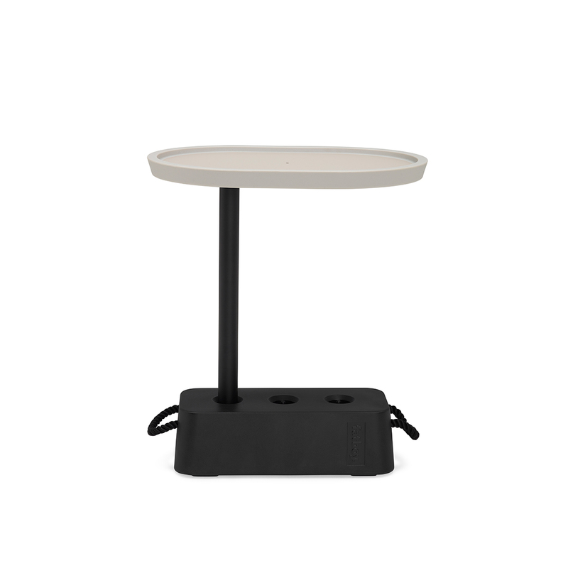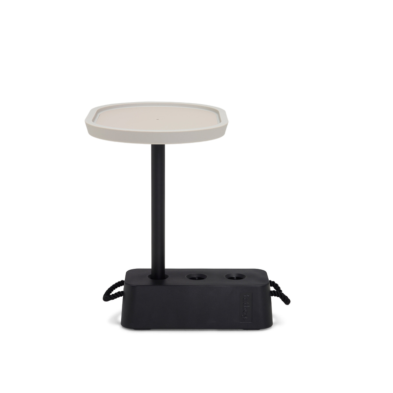 RECOMMENDATIONS FOR USE:Unique multipurpose sidetable, 1 base (to be filled with water or sand (9-11 kg.)) containing 3 holes which can be used to position your table top. It can be used as a standalone sidetable, but can aswell be used next to your couch or lazy chair to serve your drinks.Don’t twist the top over 45 degrees from the base to ensure it won’t flip over during heavy loading.CLEANING INSTRUCTIONS:Wipe clean with a moist cloth or water and soap.