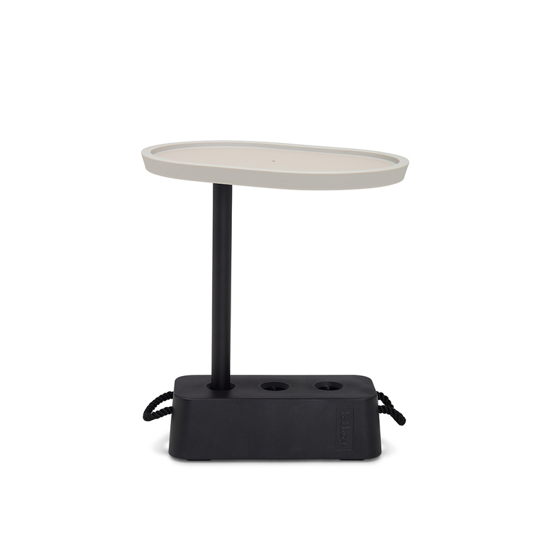 A solid outdoor side table that fits anywhere. Made of recycled materials and steel. Brick Table does not tip as the base can be filled with water or sand to make it heavy. Change the position of the non-slip table top by adjusting it into one of three holes. This side table in your garden keeps its good looks as it is UV- and corrosion resistant.Item104369EAN8719773036131