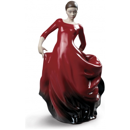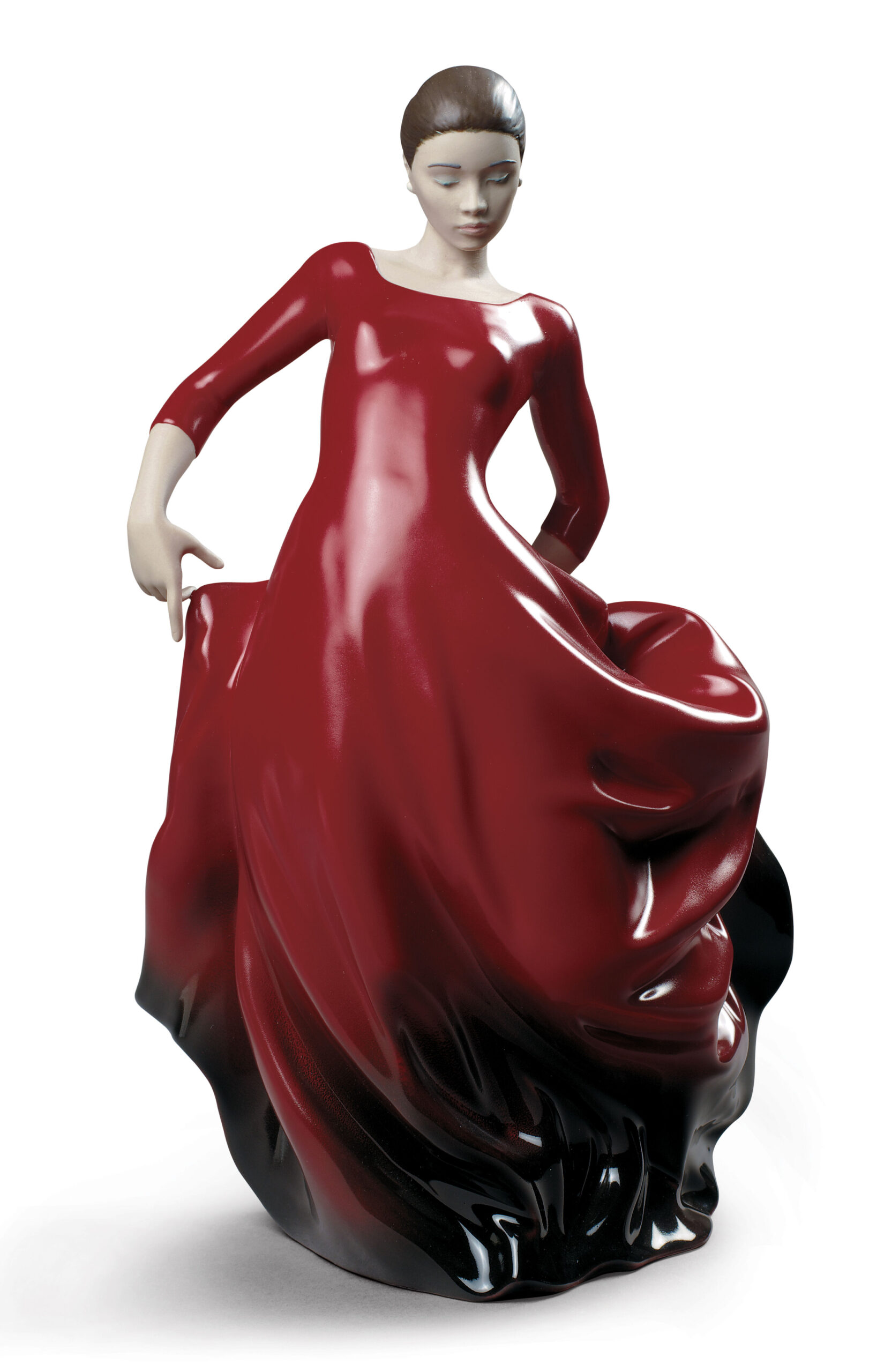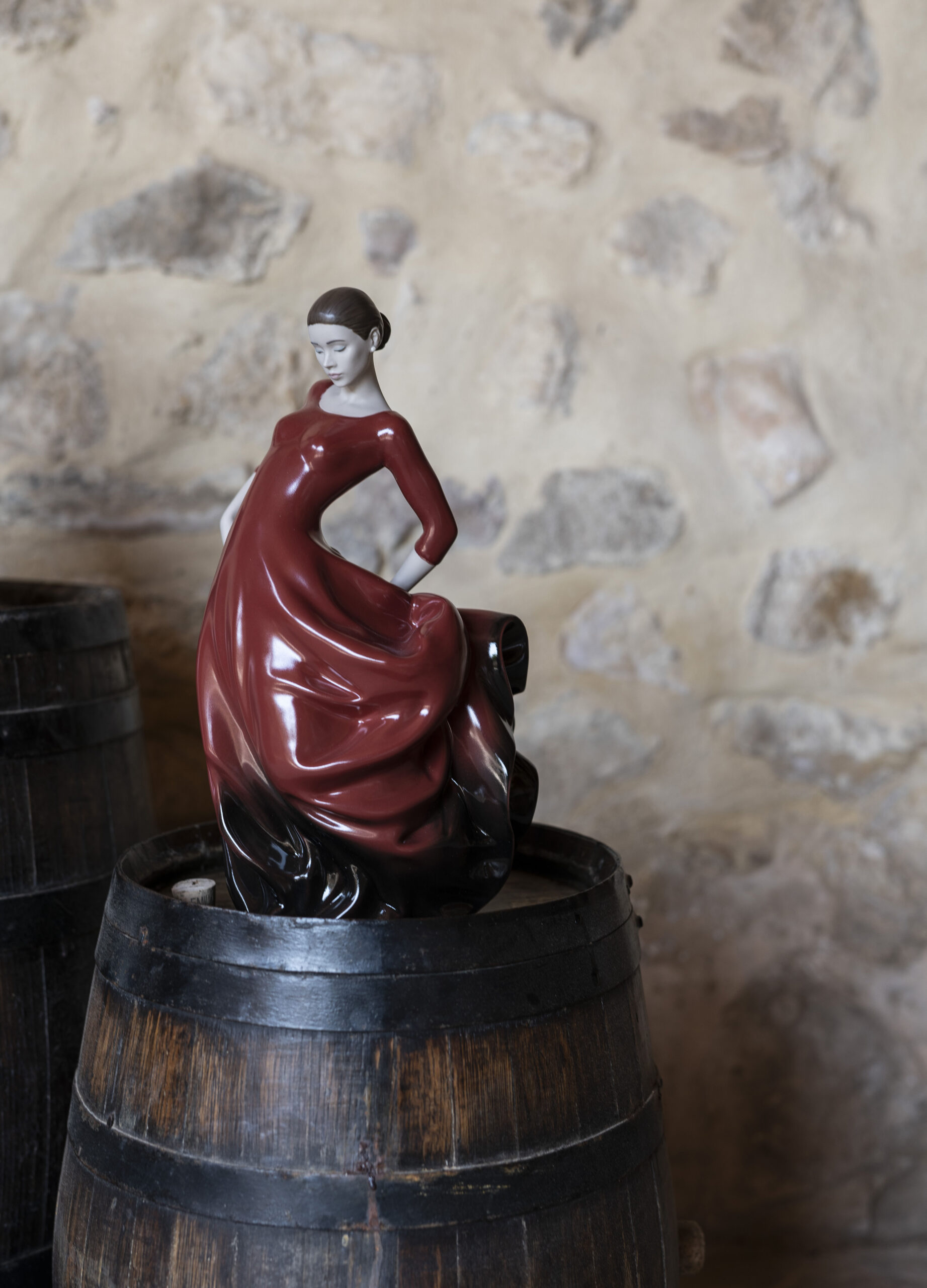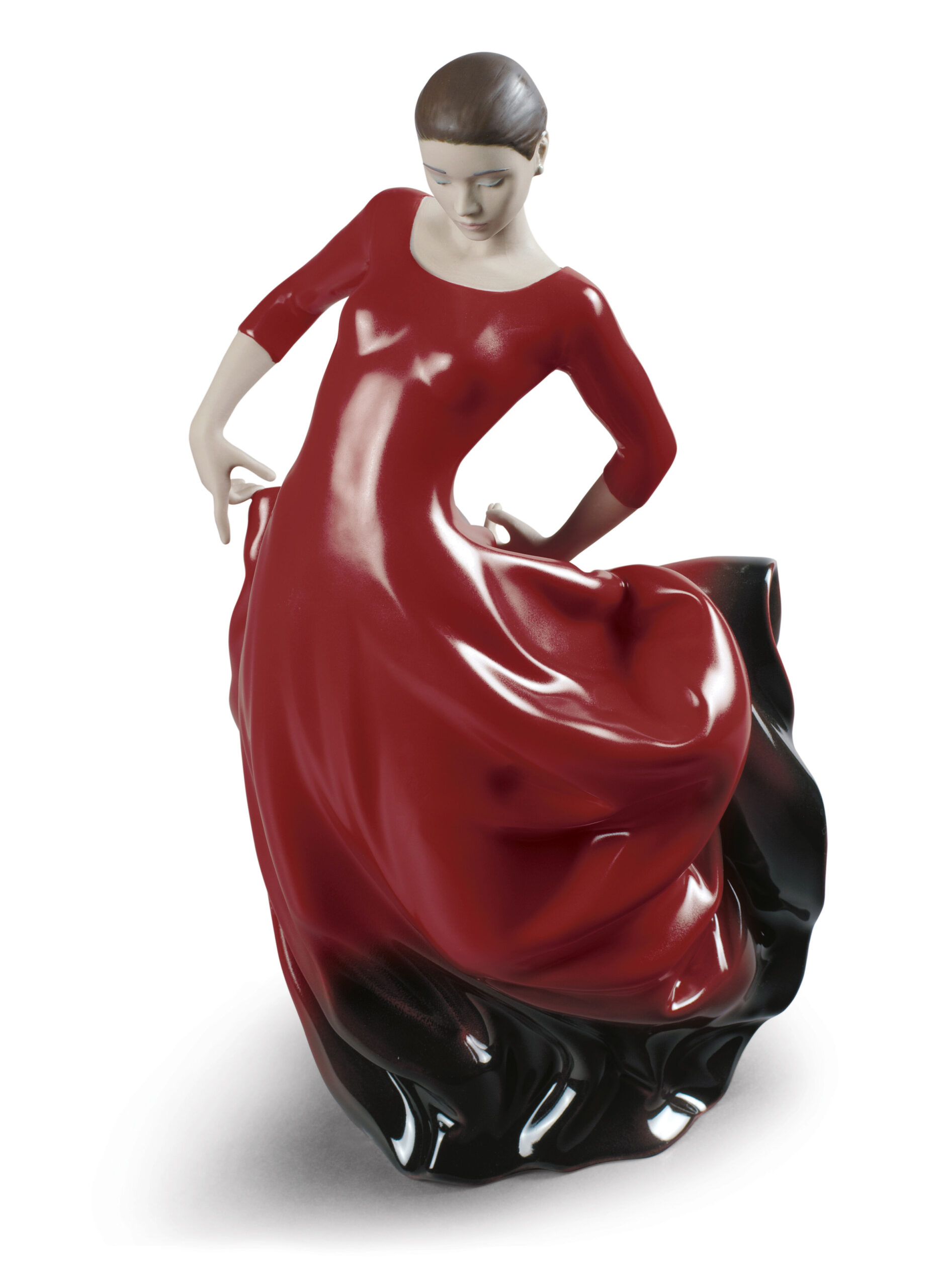 Emotion, strength, passion. The music plays and the dress spins, forming swirls to the rhythm of the guitar. A piece of matte porcelain with enamels, which stands out for the intense red colour of the dress. The perfect souvenir of a trip to Spain or decoration.