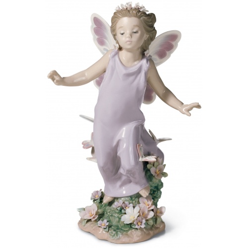 The child figure that stars in this creation depicts a charming fantasy of flowers and butterflies, full of colour, lightness and purity. A glossy porcelain piece, decorated in pastel colours, ideal as a gift, collectible or decoration.