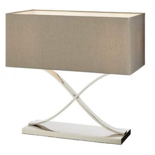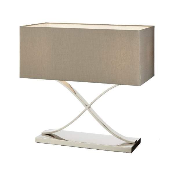 - The Byston Table Lamp finished in steel has a great geometric profile giving it a distinctive decorative look. It is completed with a grey rectangular shade.