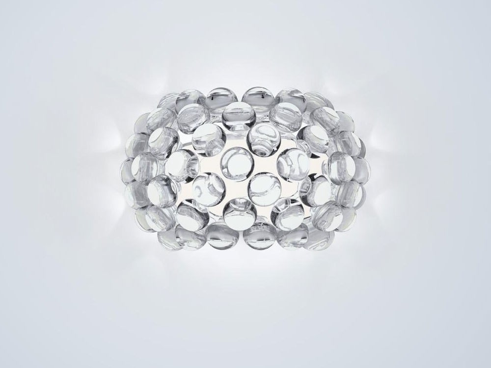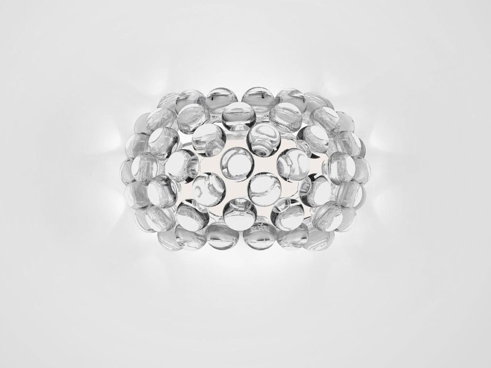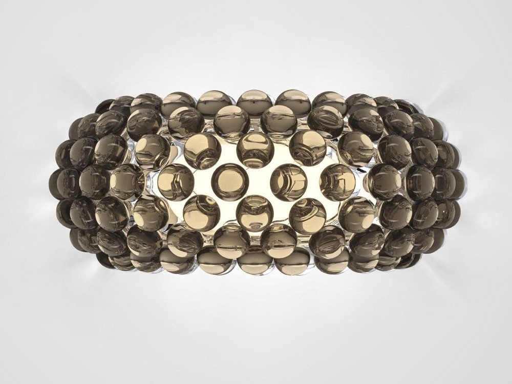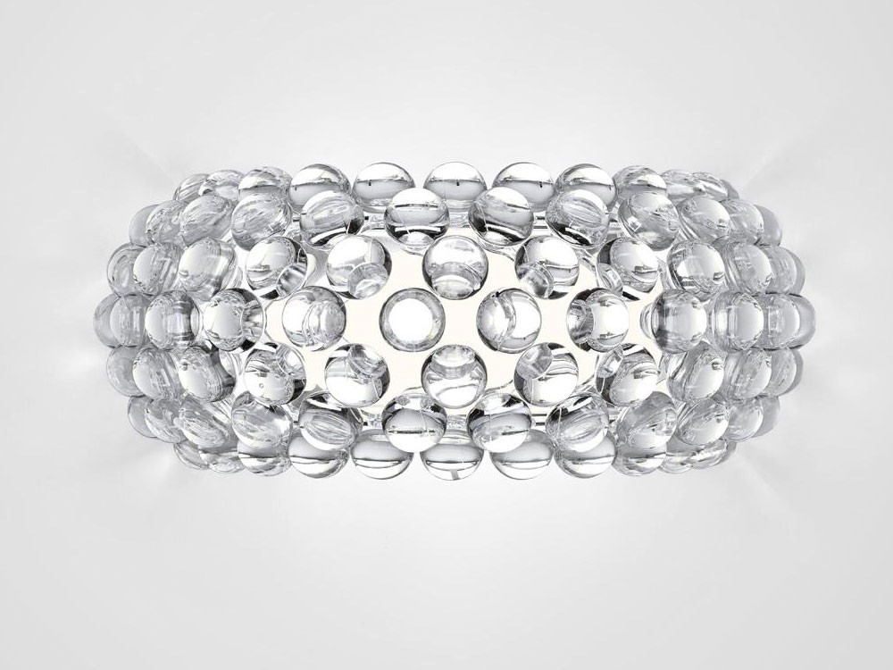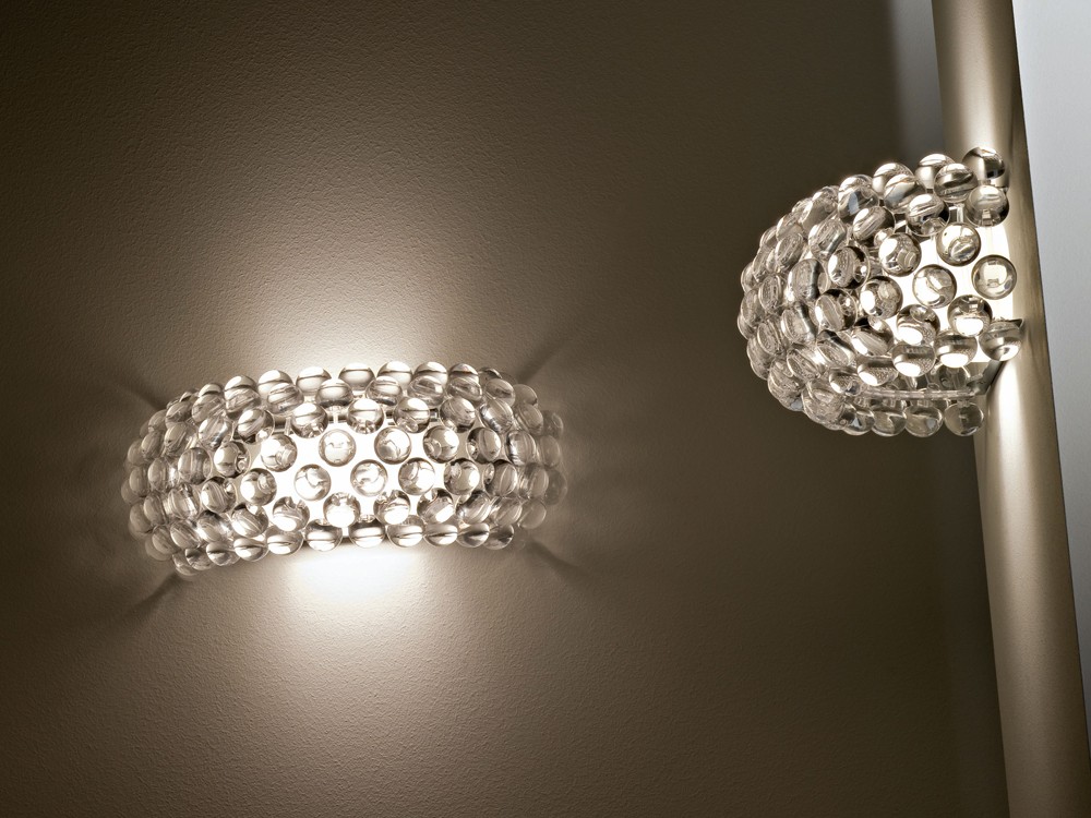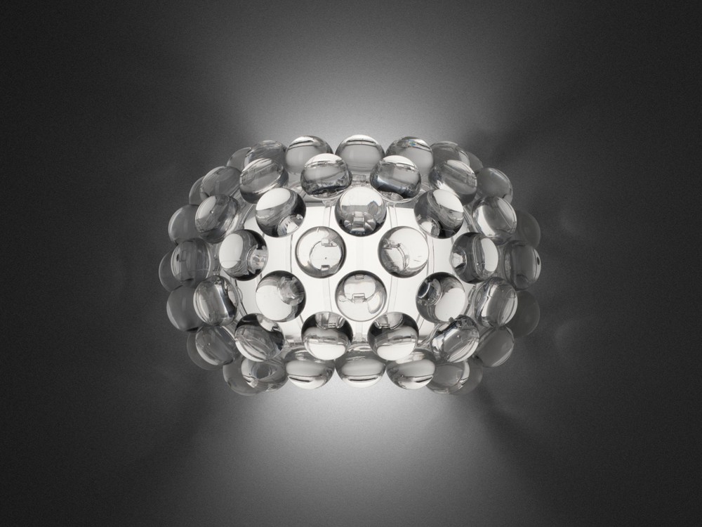 Crafted from jewel-like spheres creating a glamorous feel to any room, the beautiful Caboche wall light from Foscarini is available in a transparent or grey finish.