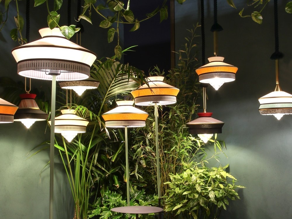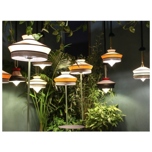 Calypso is a collection of outdoor lamps inspired by the musical hum of 1940s Caribbean culture. Traditional European Deco style, characterized by geometrical lines and black & whites, is revitalized thanks to bright colours, patterns and twines.