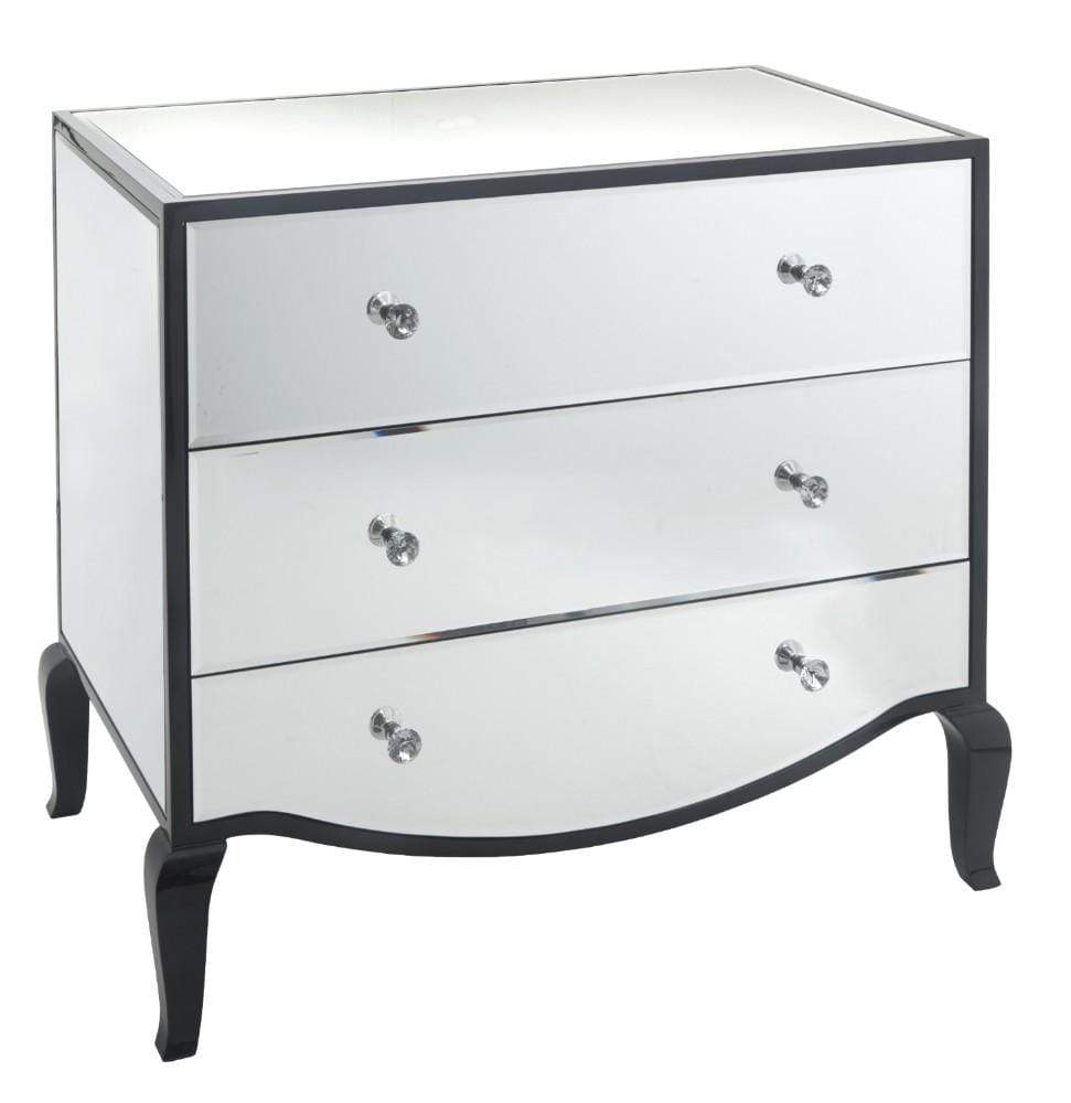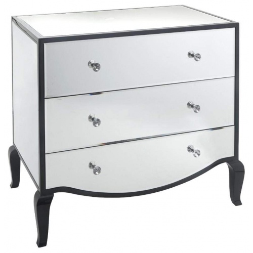 The Carn black glass & mirrored chest of drawers with wooden feet gives the impression of hotel chic look, making it a great designed feature where ever it is used as a storage solution.