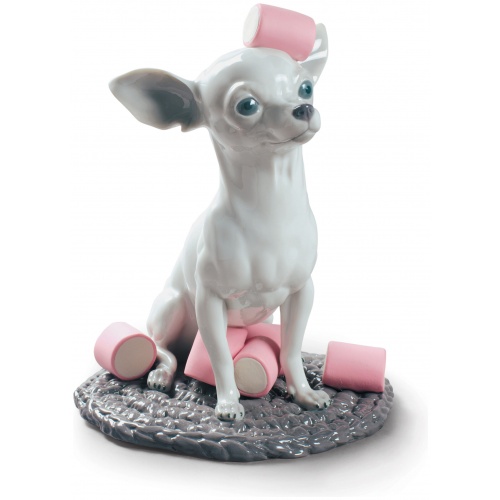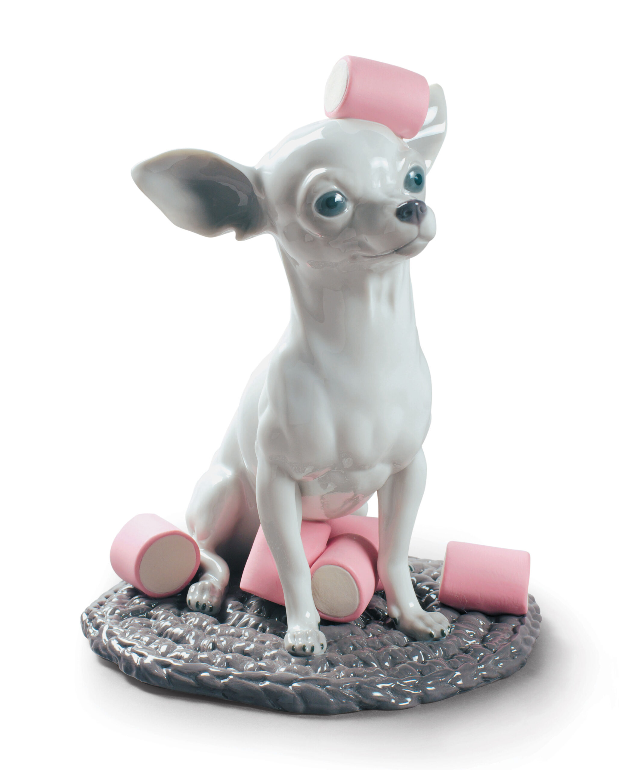 This Chihuahua has been surprised by his owners playing with some sweets and adopts a funny attitude of disguise. This collection starts from this idea to develop some nice figurines of mascots represented in real size with all luxury of details and the playful complement of the sweets, that contribute a colorful and surprising contrast. A finish that combines Matte porcelain and shine for a perfect piece for animal and pet lovers.