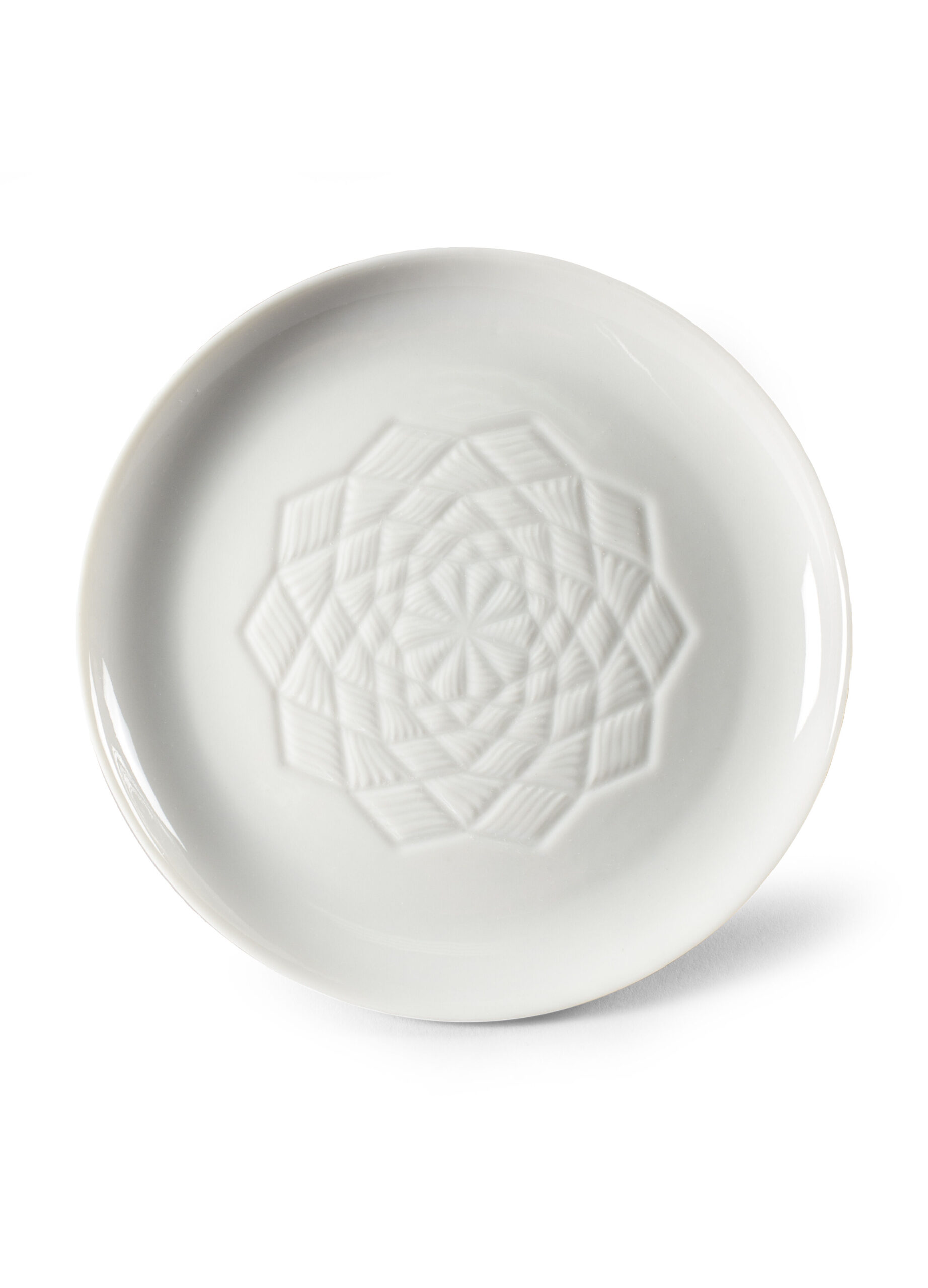 Porcelain in a white glazed finish with an elegant ornamental design. This piece is suitable for food, easy to clean and prepared for use of microwaves and dishwashers. It makes a perfect gift for a wedding, for special occasions or as a corporate gift. Handcrafted in Spain.