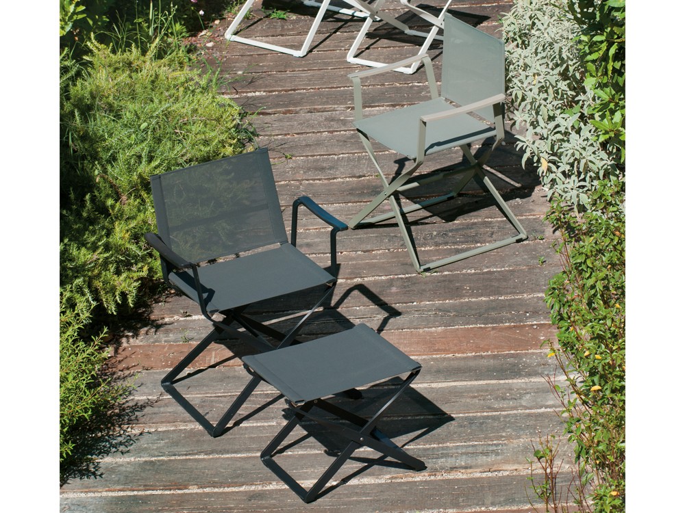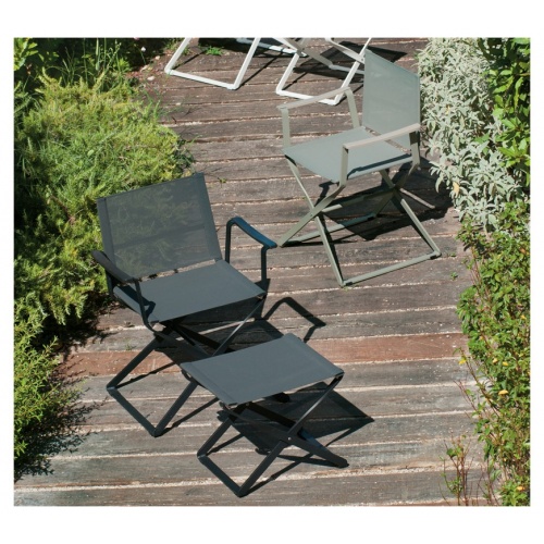 The spiral shape of the aluminium framework and the high-performance fabric are the signature features of the Ciak outdoor folding pouf.