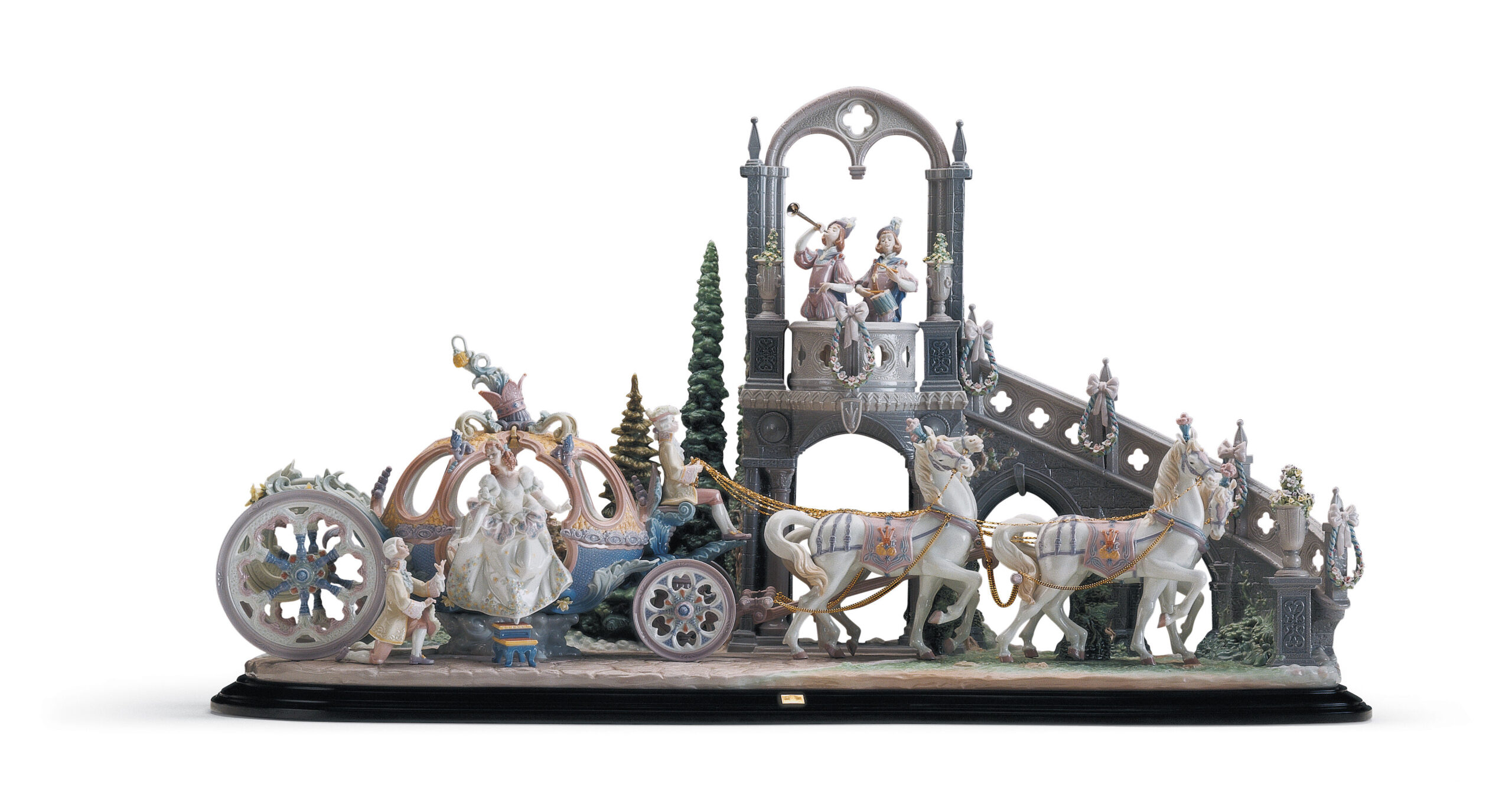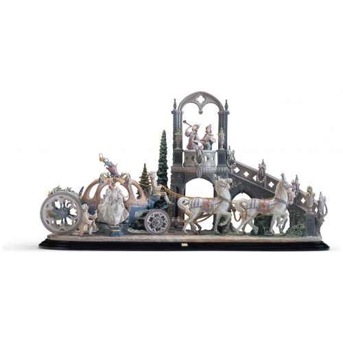 In a display of artistic and technical virtuosity, even the tiniest detail imagined by Perrault has been recreated: the horses reins are gold-plated while the harnesses are embellished with zircon and the inside of the carriage is profusely decorated. Luxury, magic and dreams all come together in a creation which, measuring 116 cm long, is one of the biggest LladrĂ³ pieces yet undertaken.