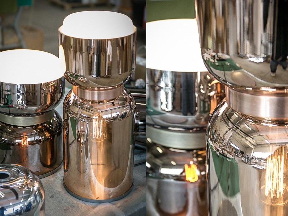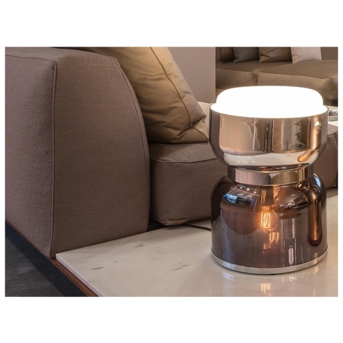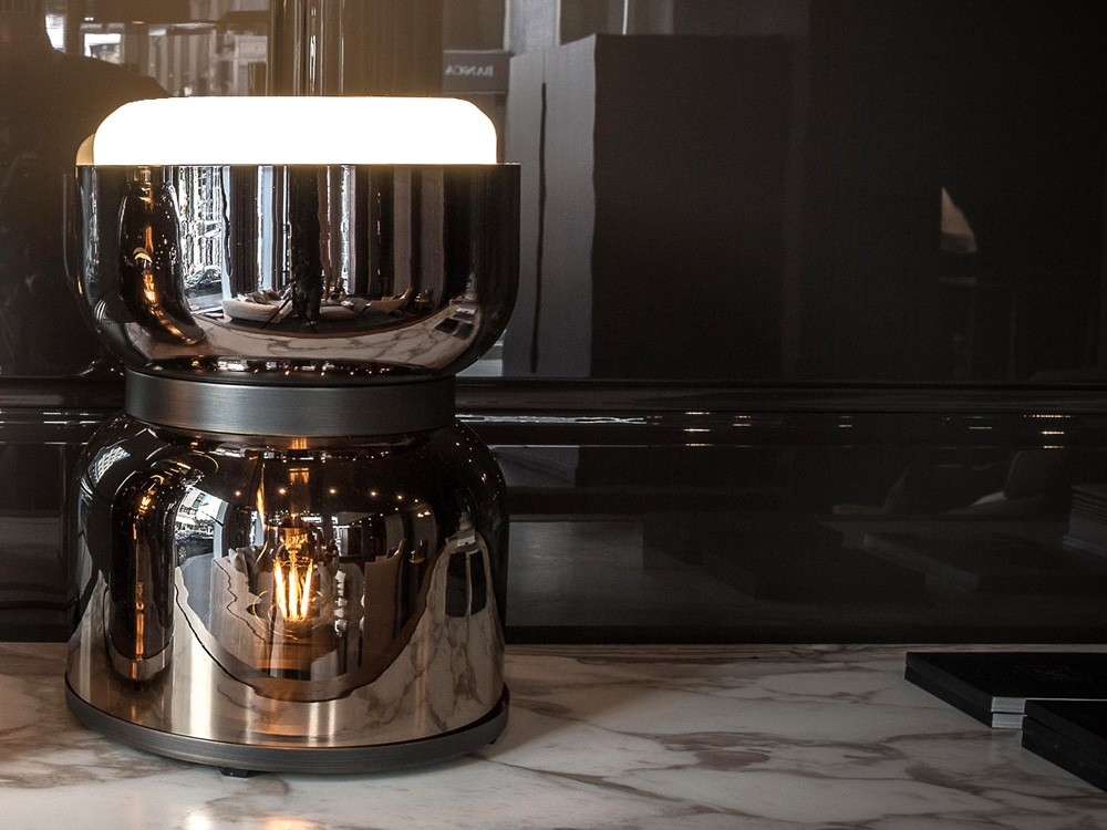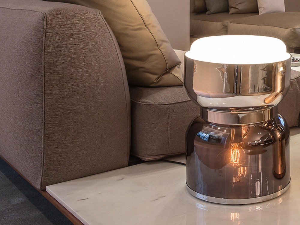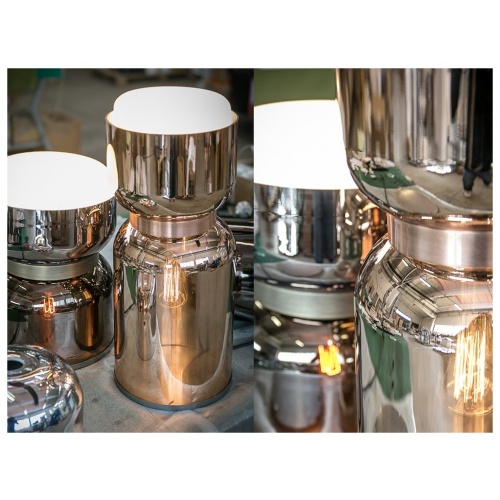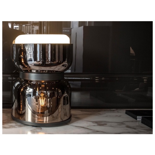 Mark the time with the light…or stop it, if you want to. The “Clessidra” table lamp, simultaneously filters and contains the light through the use of mirrored glasses. Double switching for a dual effect: light and emotions.