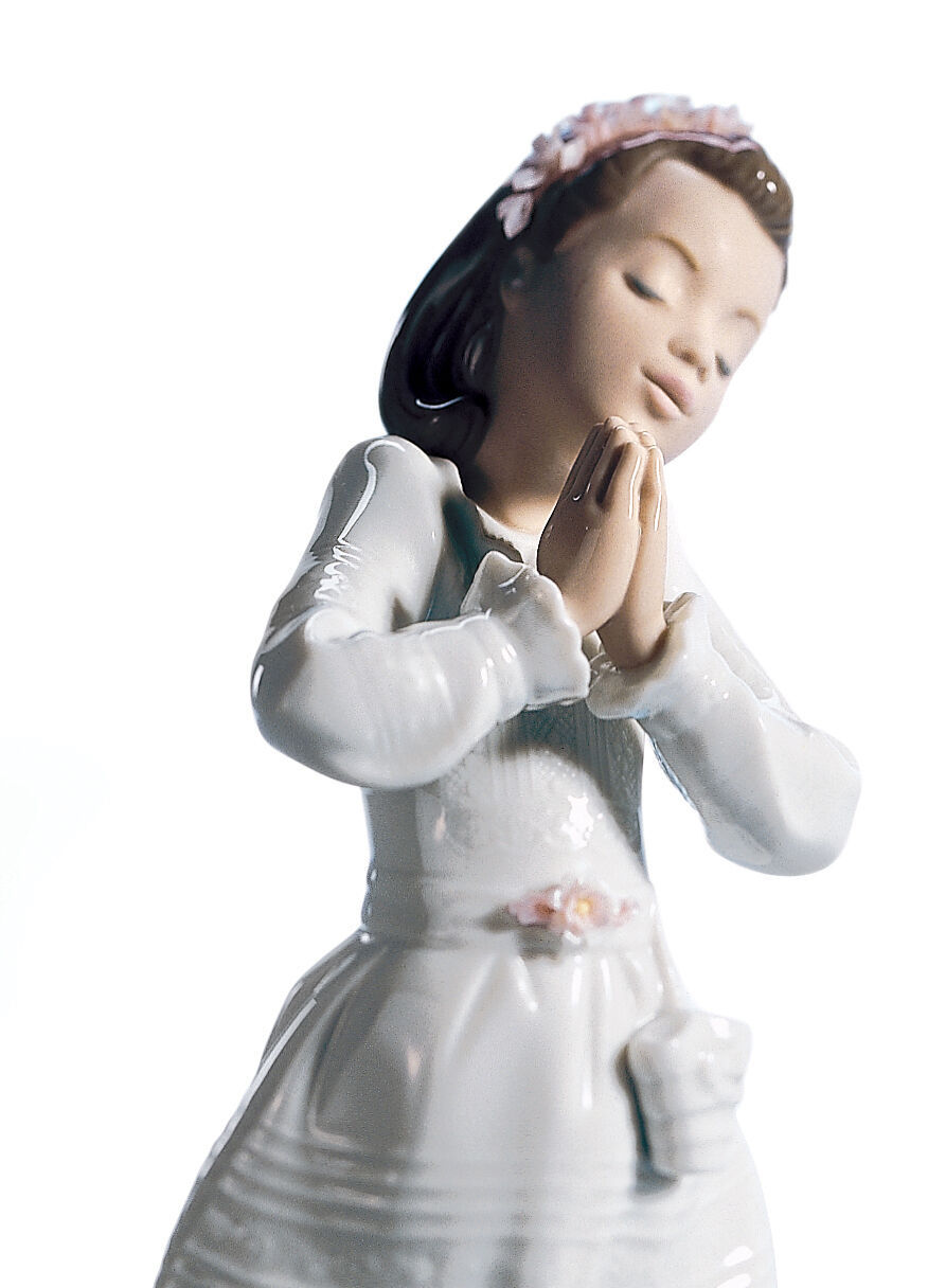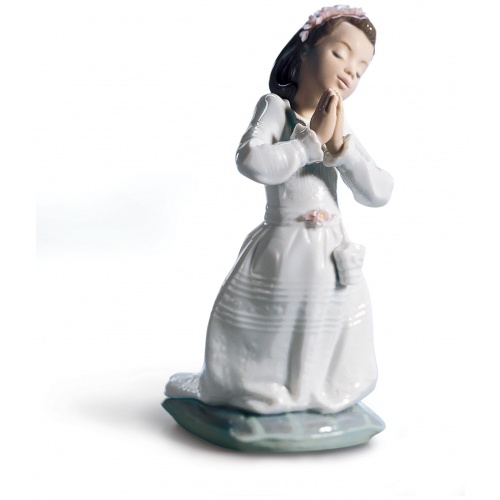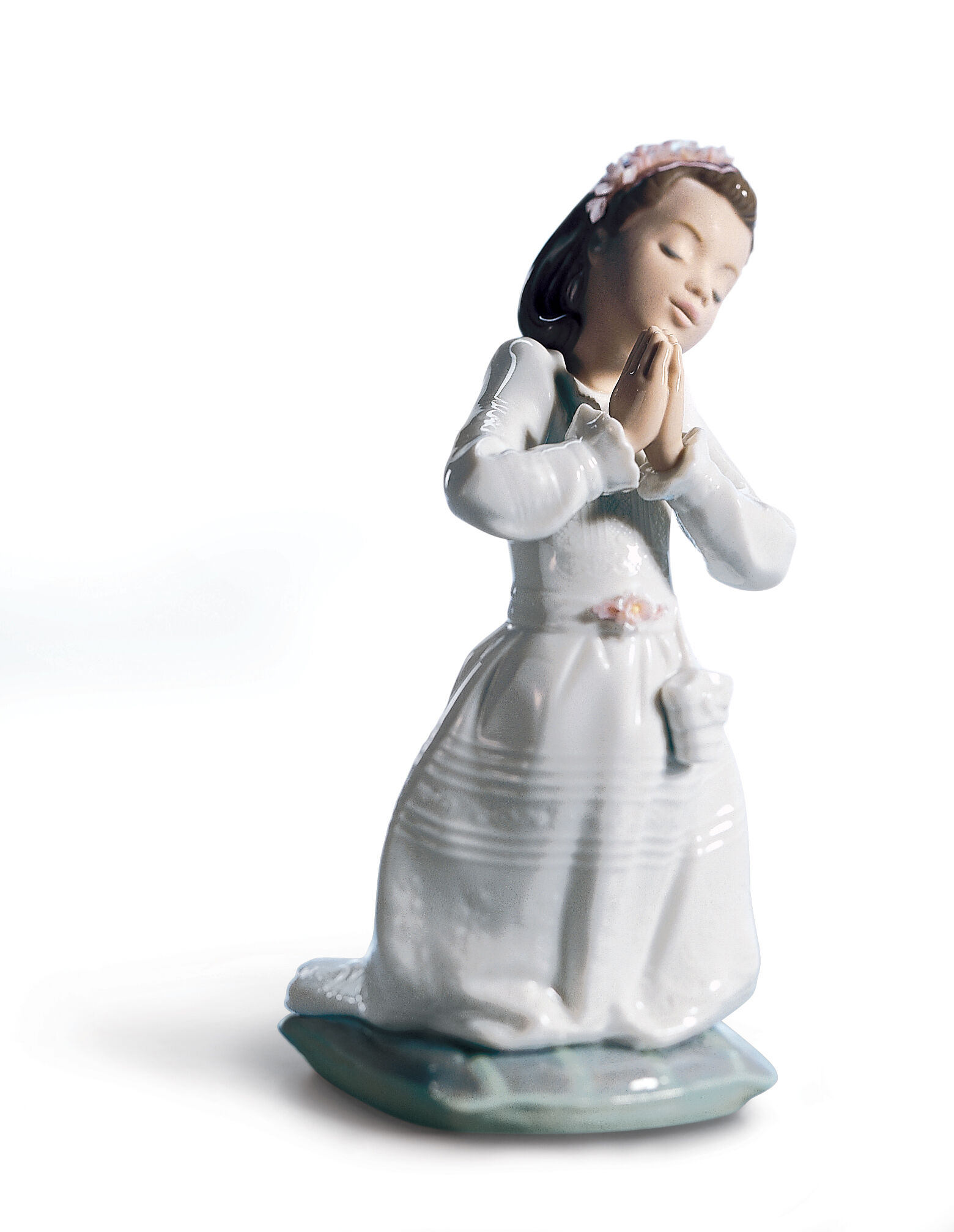 It’s a very special day, the whole family is gathered and she feels happy and radiant in her beautiful white dress. A glossy porcelain piece, finished in soft pastel shades, the perfect gift for a girl on the day of her first communion.