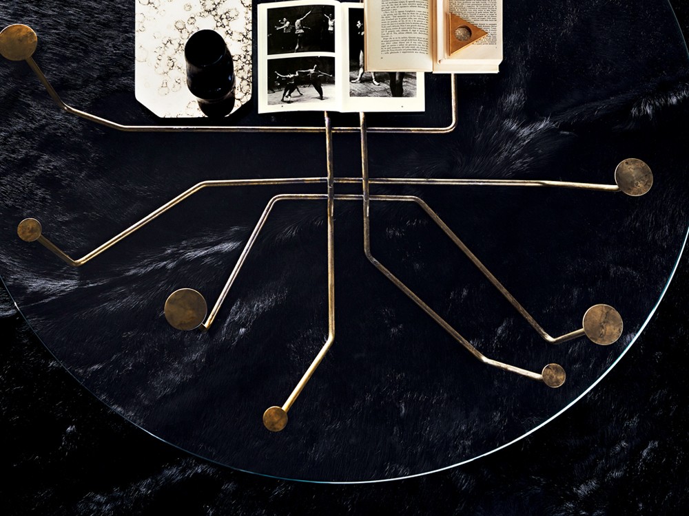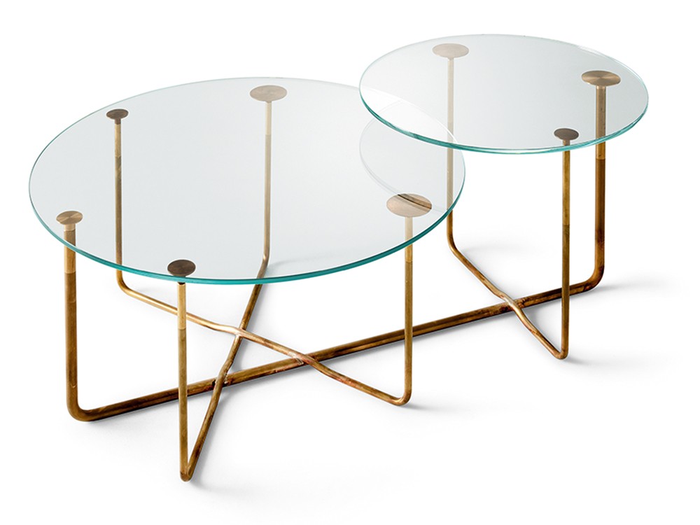 This eye-catching design by Massimo Castagna features a burnished brass base that is available in an array of shapes and sizes.