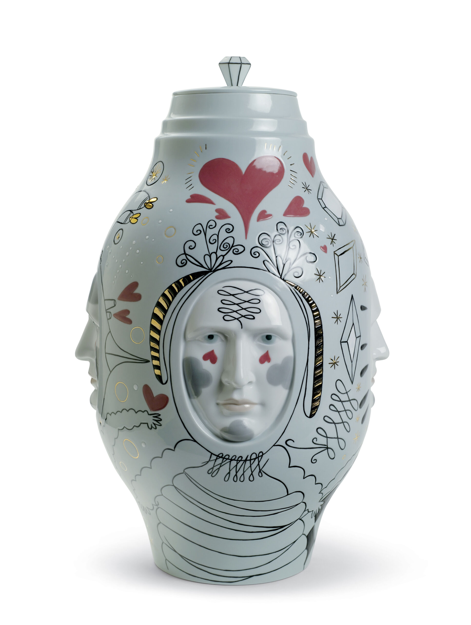 Like all the pieces in Jaime Hayon’s The Fantasy Collection, this creation arises from the fusion of a classic LladrĂ³ theme such as love and the playful sense and fantasy that the Spanish creative Jaime Hayon brings to his designs. With elegance and carefree attitude, love inspires this innovative vase in which the faces that decorate each of the faces have a mysterious conversation between them.