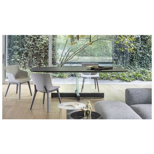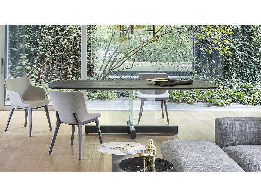 The design of the table offers a collective vision where the role of each element emerges in relation to the others in an appealing contrast between straight lines and soft curves, between masculinity and femininity.