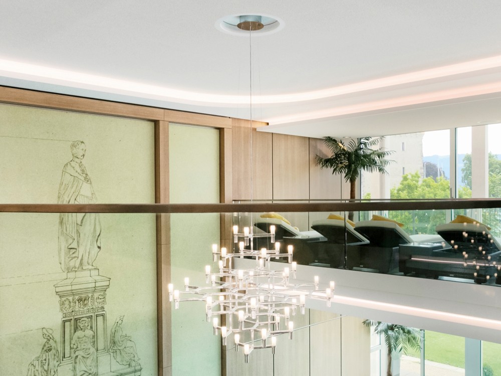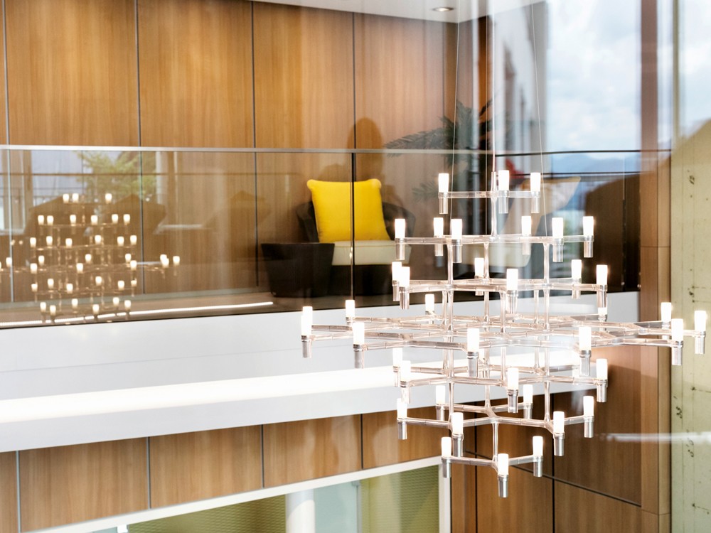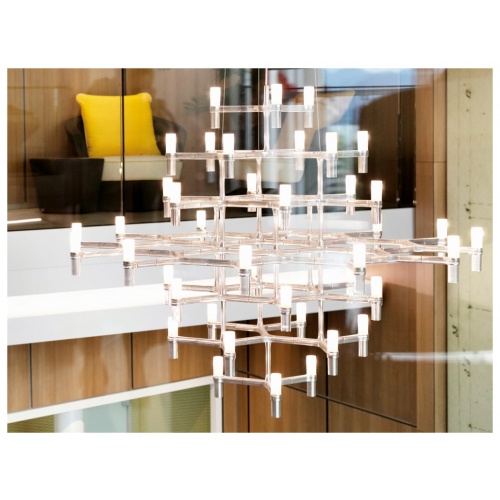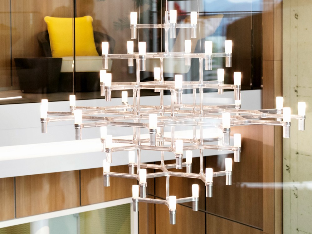 Designed by German duo Vita Jehs + Laub for Nemo Lighting, the Crown pendant light features 42 lights inspired by an old fashioned candle chandelier but with a contemporary twist.
