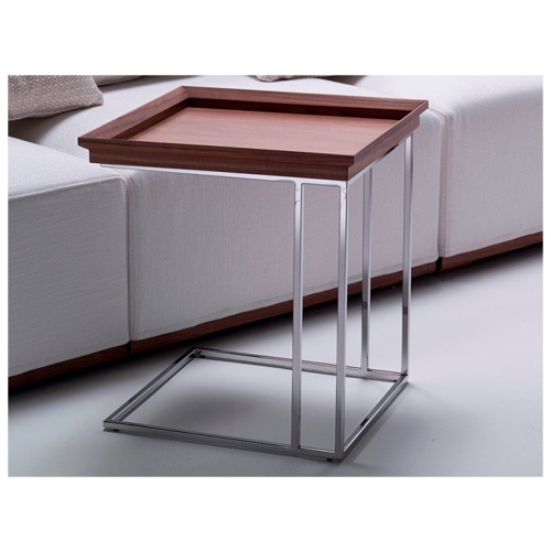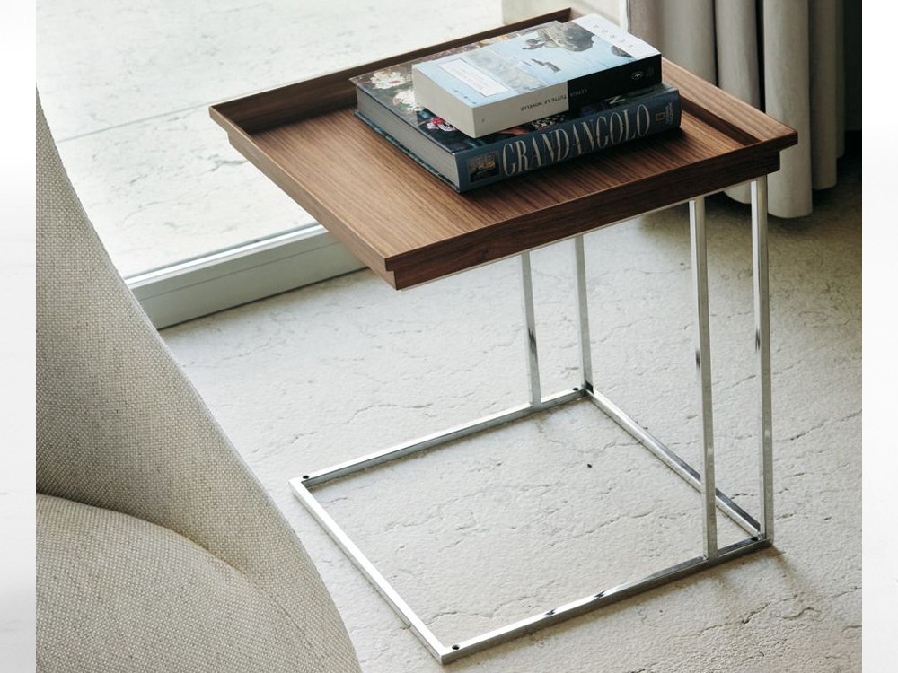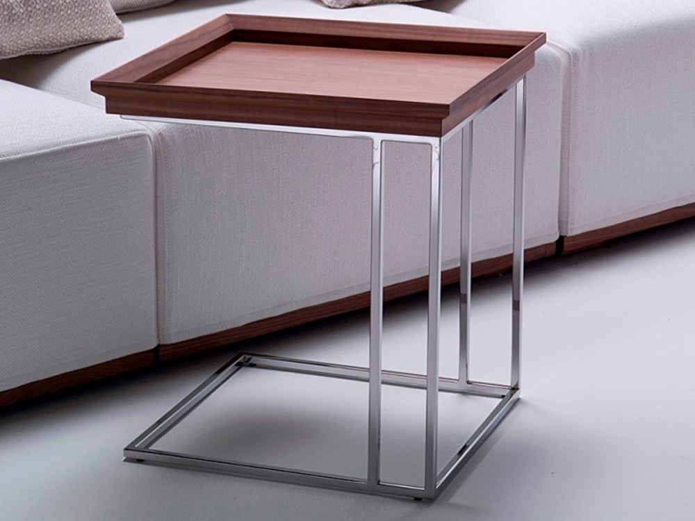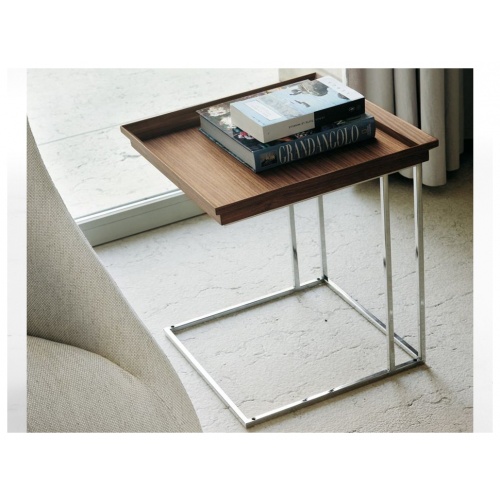 This sophisticated design features a removable tray in canaletta walnut and a frame in chrome.