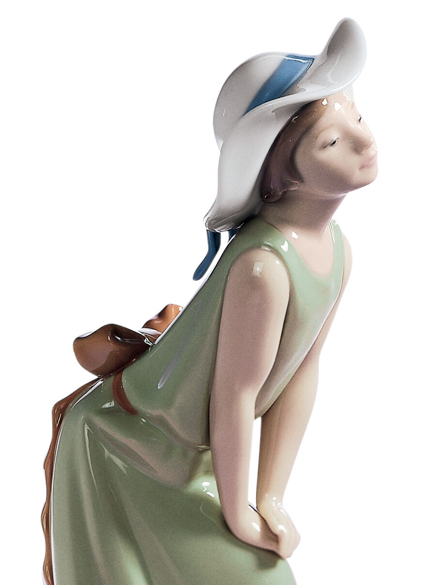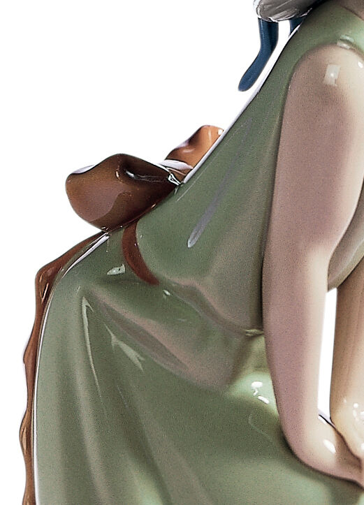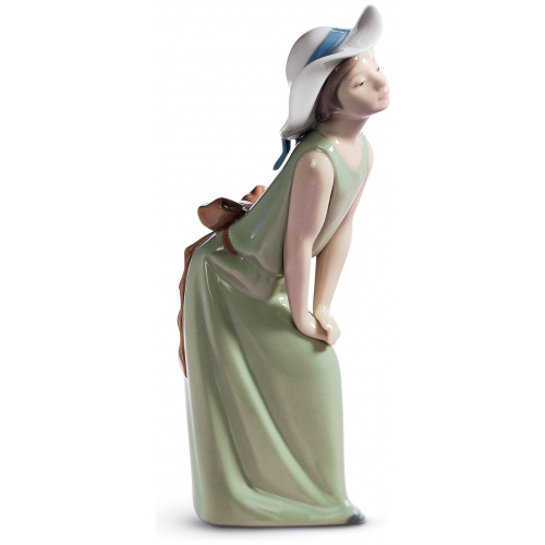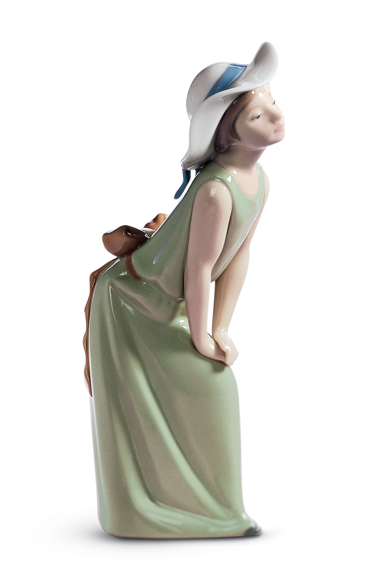 An elegant, sophisticated and inquisitive young lady, dressed for a dance or perhaps dressing up just for fun. A piece of glossy porcelain, decorated in soft pastel colours, ideal as a gift, collectible or decoration.