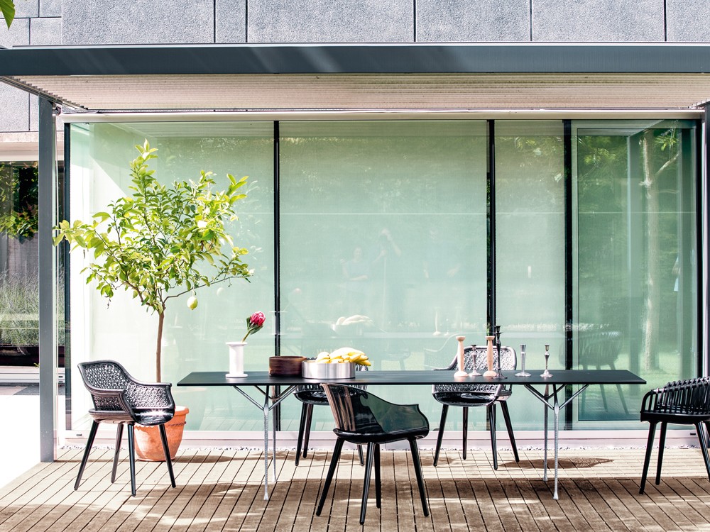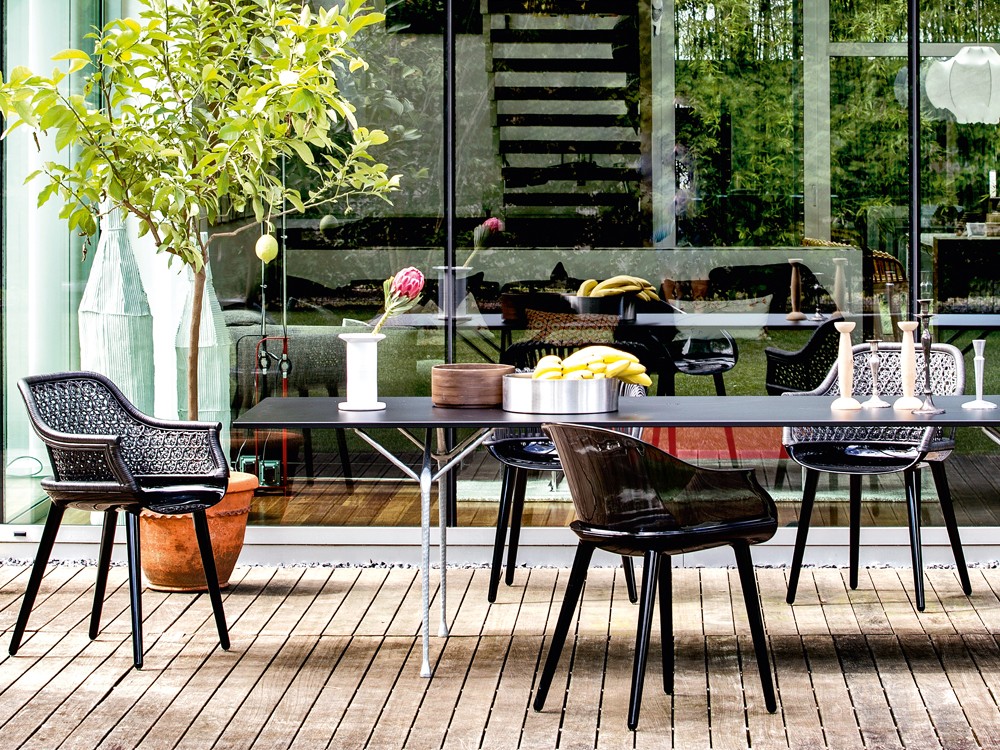 Designed by Marcel Wanders in 2011, the Cyborg Dining Chair features the symbolic Cyborg shape mixed with a transparent seat & backrest.