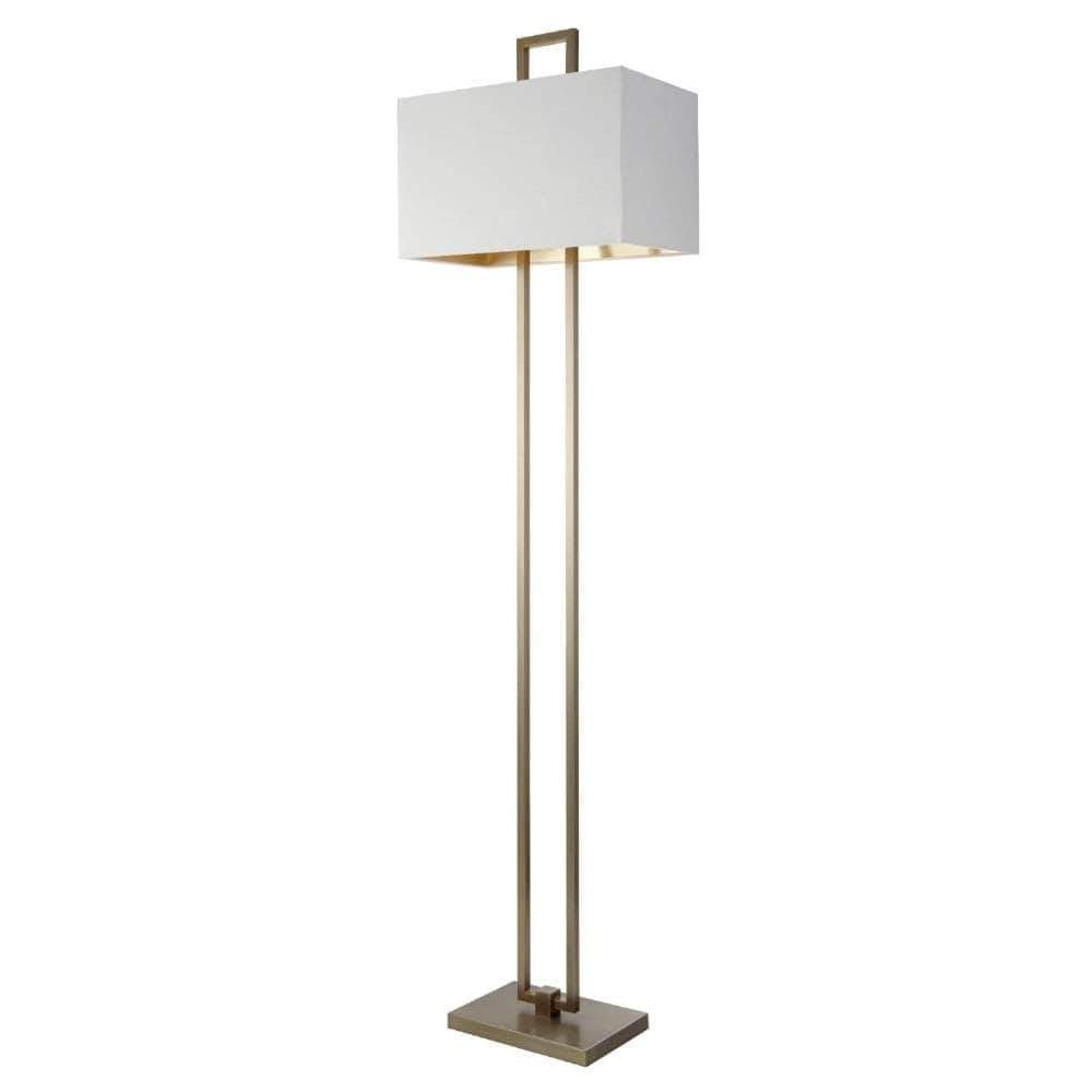 Height: 160cm Width: 41cm Depth: 24cm Finish: Antique Brass Shade: Included Wattage: 40W x2 Material: Metal