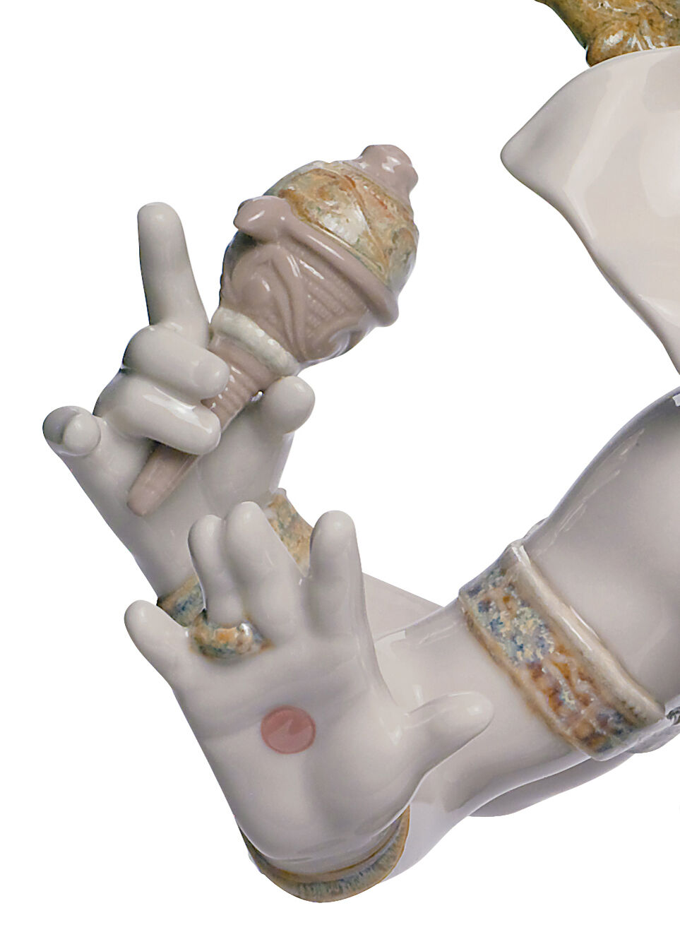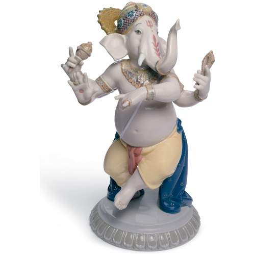 Lord Ganesha is the god of wisdom and knowledge. This deity is very popular in India, and he is represented here dancing. In addition, the piece portrays other attributes of the traditional iconography of Ganesha, such as the gada (mace), the paasha (rope) and the broken fang, all elements whose symbolism is contained in the avatars, or traditional stories about Ganesha, which are known well by his numerous worshippers.